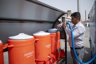 وتابع علي أنّ "شعبة السقاية توفّر المياه المبرّدة للزائرين عَبرَ حافظات المياه المنتشرة في الطرق المؤدية إلى الحرم الطاهر".