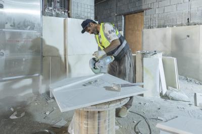 وتابع أن "الأعمال الخاصّة بالهيكل الإنشائيّ للمشروع والتقطيعات الداخلية باستخدام مادة البلوك قد أُنجِزت بالكامل، فيما تستمرّ أعمال الإنهاءات الداخلية والخارجية التي تشمل الجبس، والمرمر، والبورسلين، والسيراميك، والطابوق (الجفقيم)".