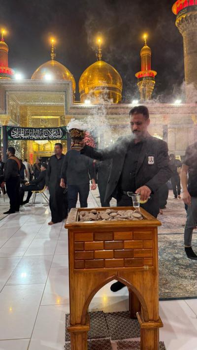 He stated that"the Department of care of the holy shrine worked to provide a camp to accommodate visitors, as well as specialized staff carried out the process of perfuming the shrine of Imam al-Jawad (peace be upon him) and steaming it throughout the blessed days of the Ziyarat, using luxurious types of perfumes and incense provided by the Al-Abbas's (p) holy shrine".