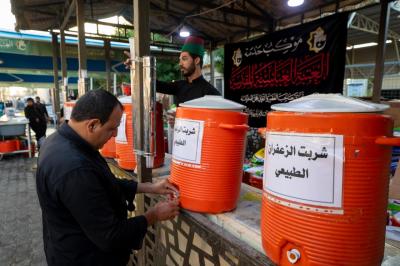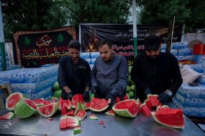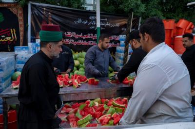 "The Al-Abbas's (p) holy shrine has started from the first day of the Ziyarat to supply the service processions in the city of Kadhemiya with large quantities of potable water and ice, which are produced in its laboratories, in addition to supplying them with red watermelon fruit, especially in light of high temperatures,"Hanoun added.