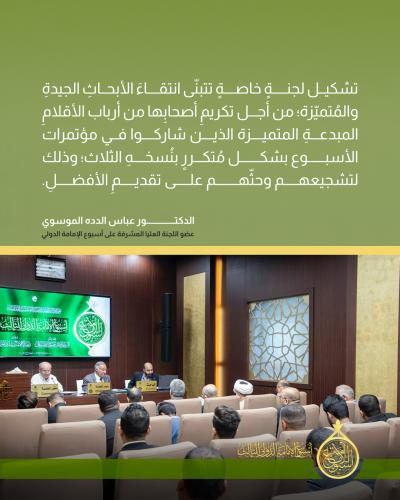 روضہ مبارک حضرت عباس(ع) کی زیر سرپرستی منعقدہ تیسرے بین الاقوامی ہفتۂ امامت کی اختتامی تقریب میں پیش کی گئيں اہم سفارشات جاننے کے لیے یہ رپورٹ ملاحظہ کریں