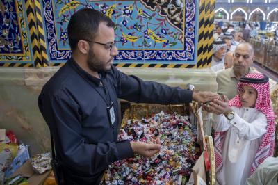 Die Abteilung für die Pflege des Heiligen Hofes am Heiligen Abbassitischen Schrein schenkte den Besuchern anlässlich des Tages der Mubahala Süßigkeiten.