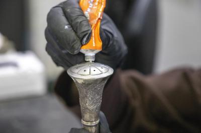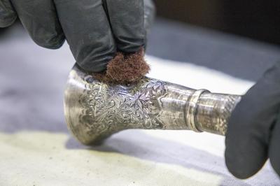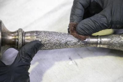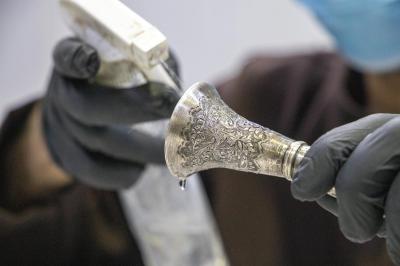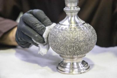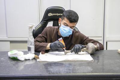 Il a ajouté : « La pièce passe par plusieurs étapes, en commençant par son transport du service de conservation au laboratoire, où elle est photographiée avant et après le processus de restauration. Un rapport détaillé est établi, puis elle subit un entretien mécanique ou chimique si nécessaire, selon les décisions du restaurateur spécialisé après consultation de l'équipe du laboratoire. »