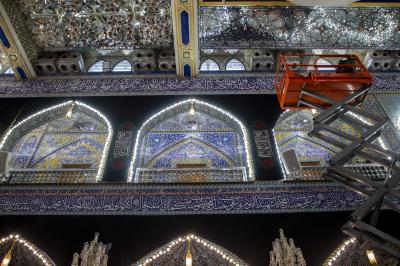 The assistant head of the Holy Shrine's Courtyard Care Department; Sayed Zain Al-Abidin Al-Quraishi, said: "The department's staff have begun the first phase of draping the holy courtyard and the entrances of the Al-Abbas's (p) holy shrine in black, as part of the pre-prepared plan for the ceremony of changing the flag of the dome of the shrine of Aba Al-Fadl Al-Abbas (peace be upon him) and the Ziyarat of the tenth of Muharram."