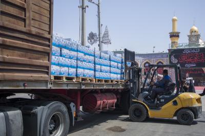 کارخانه آب بهداشتی الکفیل وابسته به شرکت صنایع غذایی الکفیل در آستان مقدس عباسی از توزیع بسته های آب آشامیدنی میان موکبهای حسینی خدمات رسان در طول ۱۰ روز اول ماه محرم الحرام خبر داد.