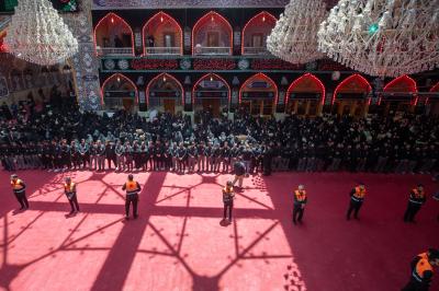 وانطلقت المواكب العزائية بعد صلاة الظهرين من جوار مرقد السيد جودة (وهو أحد أعيانها ويعد المؤسس لهذه المراسم) متوجهين عبر الشارع المحيط بمركز المدينة القديمة ومن ثم إلى شارع قبلة الإمام الحسين (عليه السلام) ليصلوا مرقده الطاهر ومنه عبر ساحة بين الحرمين الشريفين، ليختم العزاء مسيرته عند مرقد أبي الفضل العباس (عليه السلام).