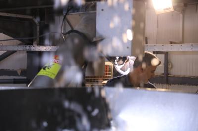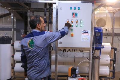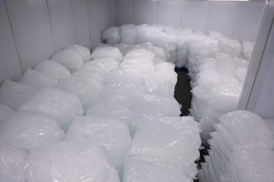 وبيّن أنّ كل معمل يضمّ أربع مكائن، وتنتج كل ماكينة ما معدله 75 كيسًا من الثلج البلوري في الساعة، أي ما مجموعه 300 كيس في الساعة الواحدة لكل معمل.