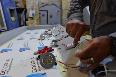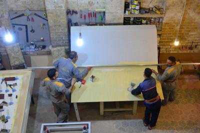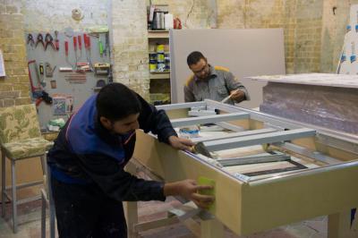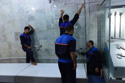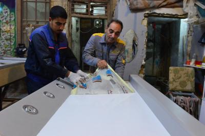 M. Ihab Razaq Kadhim, responsable de l'unité des maintenances au musée, il ajoute : « la fabrication est commencée par la mise en place de la base de 2m / 1m/ 2,30 m ; ensuite la structure en fer peint avec une texture résistante aux influences extérieurs et couverte ensuite d'une couche de plastique, le deuxième côté de la base est protégé de plastique également, d'une épaisseur de 20mm, un matériau appelé (BNL), les côtés frontaux sont couverts également d'une épaisseur de 10mm. Ces matières sont protectrices et résistantes et écologiques afin de protéger les objets à l’intérieur de la vitrine.