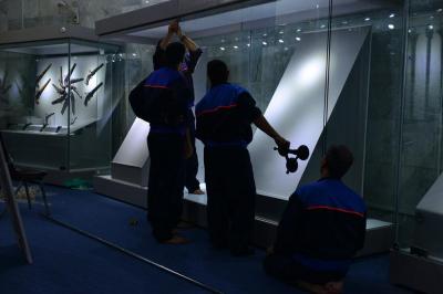 M. Sadiq Lazim directeur du Musée déclare au site officiel d'al-Kafil : « la fabrication des vitrines était un défit technique, les équipe ont réussi à atteindre un résultat très satisfaisant dans ses aspects techniques dans un temps record. Les vitrines d'exposition des objets précieux sont terminée, il reste celle des manuscrits, c'est la première fois en Irak que ce genre vitrine sont fabriquées, 11 vitrines de dimensions différentes sont terminées adaptées aux objets exposés. Elles mesurent 1 mètres de profondeur et 2,30m de hauteur, les largeurs sont adaptées en fonction des objets exposés, nous avons des vitrines d'une largeur de 1, 2,4, et 8 mètres.Nous avons demandé l'avis des spécialistes et des universitaires expérimentés, ils ont tous apprécié et validé les aspects et les normes mondiales utilisées. »