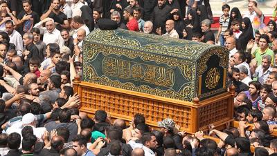 وأقيمت في العتبة الكاظمية المقدّسة مراسيم التشييع الرمزي المهيب لنعش الإمام الجواد(عليه السلام) وسط حزن شديد وهتافات إيمانية ودموع تذرف لمصابه(عليه السلام) بحضور الأمين العام للعتبة الكاظمية المقدّسة أ.د جمال عبدالرسول الدباغ وأعضاء مجلس الإدارة وخدّام الإمامين الجوادين ومشاركة عددٍ من السادة الأجلّاء والمشايخ الفضلاء في الحوزة العلمية الشريفة وجموع المؤمنين الزائرين، حيث جدّدوا خلالها العهد والولاء لتاسع الأئمّة(عليه السلام) وهي تستقي من مناهل إمامته العذبة الدروس وتستلهم العبر والمعاني السامية للمضيّ على نهجه القويم, معبّرين عن عظيم حزنهم ومواساتهم للنبيّ الأكرم (صلى الله عليه وآله وسلم) بهذا المصاب الجلل.