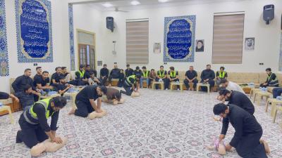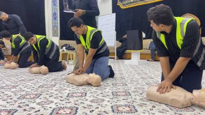 These courses are part of the preparations by the Al-Kafeel Center for Public Health and Safety for the Arbaeen pilgrimage, aimed at enhancing the skills of volunteers in first aid and enabling them to perform their humanitarian role in providing support and assistance to visitors at various service locations.