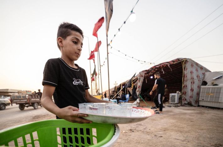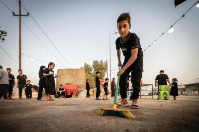ما إن تحل ذكرى استشهاد الإمام السجاد (عليه السلام)، حتى يتسابق الفتى رسول ورفاقه في افتتاح موكب قطيع الكفين في الهارثة بالبصرة، رسول الذي لم يبلغ الحادية عشر من العمر، تراه في كل أرجاء الموكب يقوم بمهام الكبار ومهام أعمامه في الضيافة وإعداد الطعام والسقي بكل نشاط وحماس، ويحرص بشدة على نظافة الموكب وأدواته.
