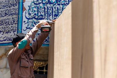 أنهت ملاكات قسم الصناعات والحرف الفنية في العتبة العباسية المقدسة، أعمال نصب القواطع الخشبية في مداخل العتبة المقدسة ومحيطها؛ بهدف تنظيم حركة سير الزائرين.