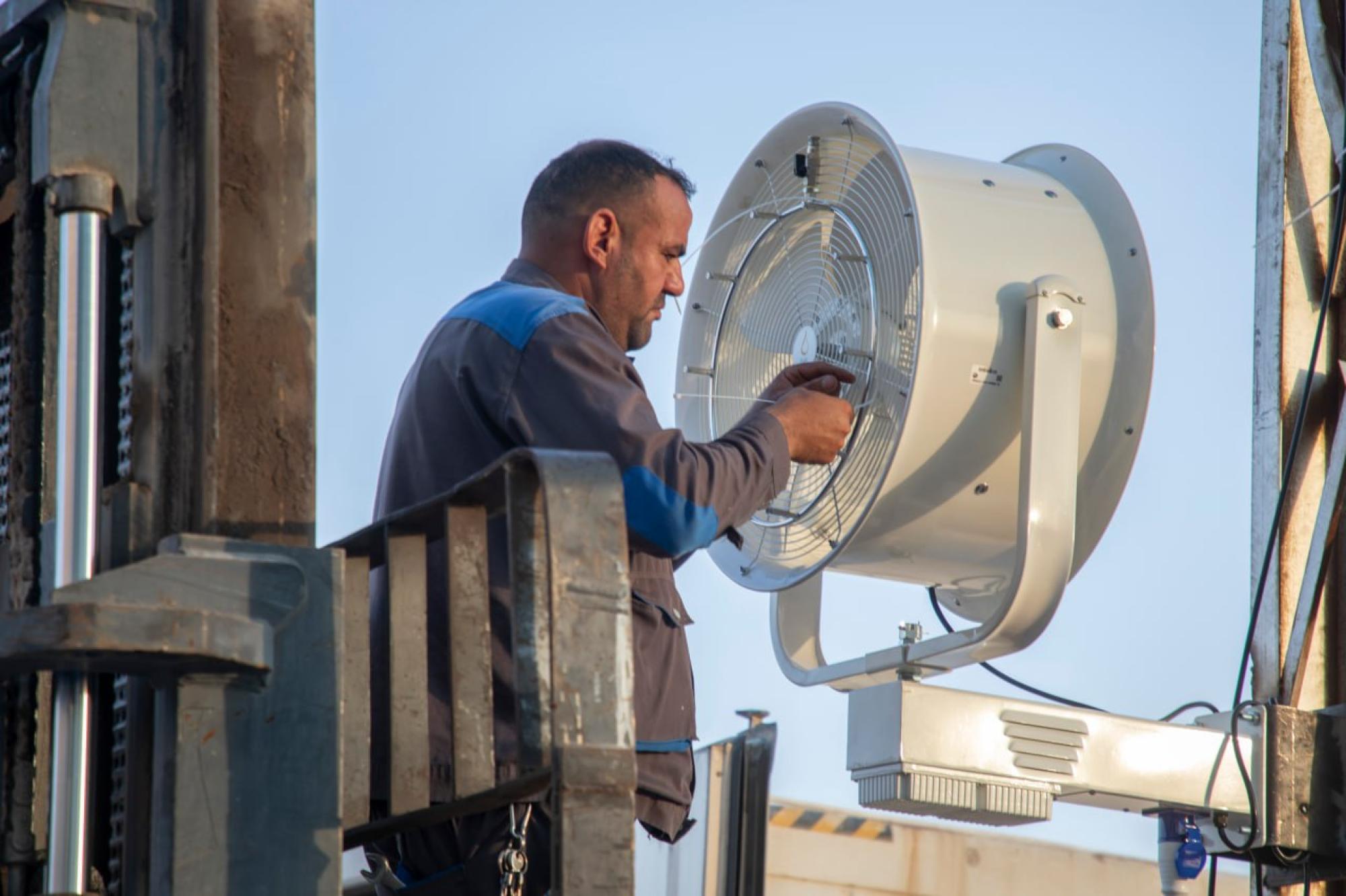 وعملت ملاكات القسم على نصب مراوح جديدة في المجمّع الذي يقع على طريق سير زائري الأربعين، من محور كربلاء المقدّسة - النجف الأشرف.