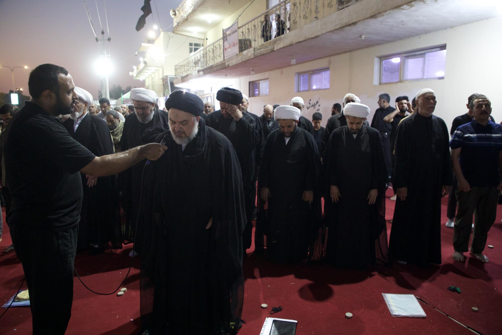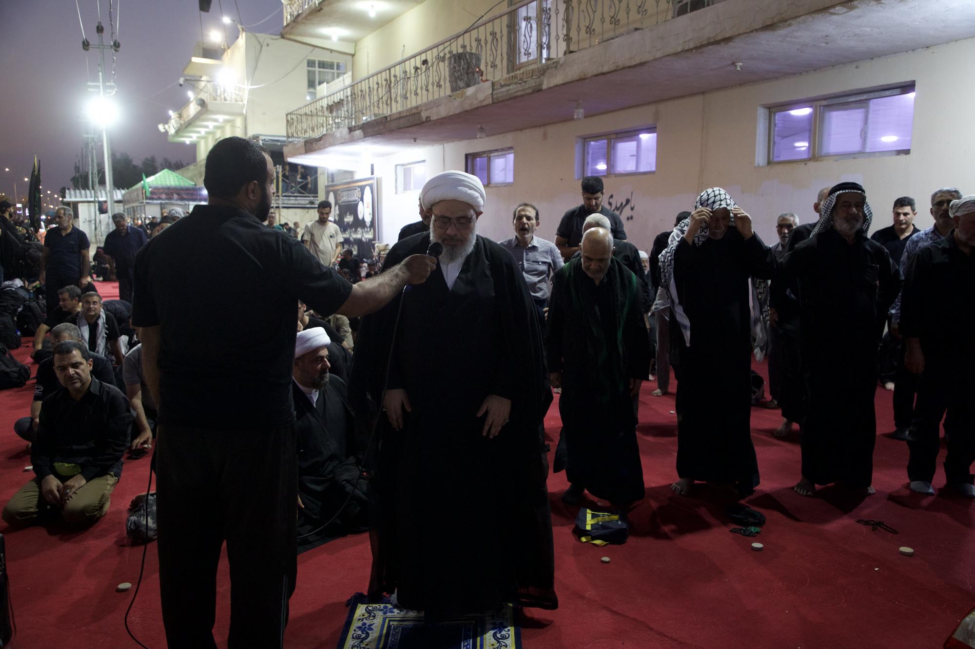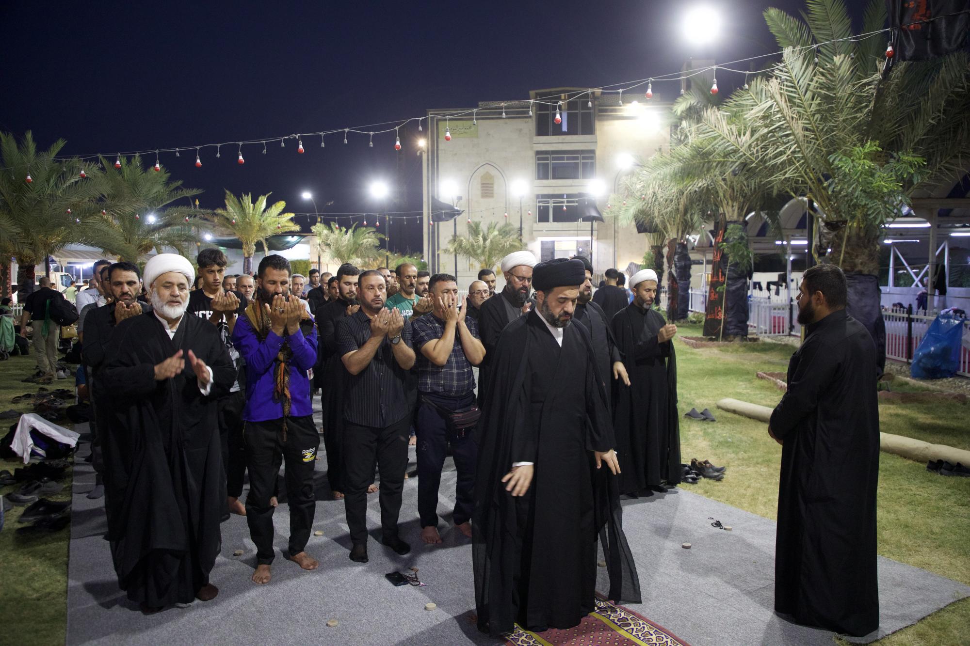 Las oraciones en grupo se distribuyen en varios lugares dentro del cortejo, lo que contribuye a la magnificación del deber de la oración y a consolidar la presencia devocional en el ambiente de la visita de Arbaeen.