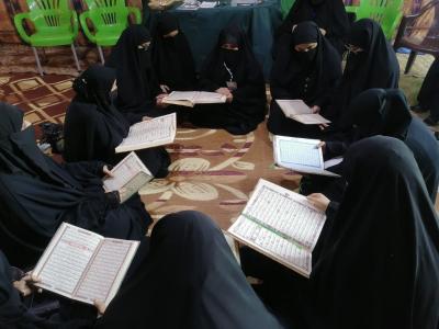 أقام معهدُ القرآن الكريم النسويّ التابع لمكتب المتولّي الشرعيّ للشؤون النسويّة في العتبة العبّاسية المقدّسة، محطّاتٍ لتصحيح تلاوة القرآن الكريم لزائرات الأربعين في بغداد، المتوجّهات سيرًا على الأقدام صوب كربلاء.