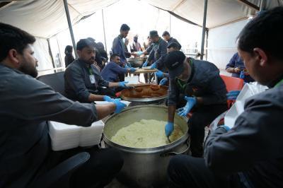 وأشار إلى أنَّ "المواكب قدمت عبر المطبخ المركزي أكثر من 15 ألف وجبة طعام يوميًّا، إضافة إلى المياه والمشروبات الساخنة والباردة على مدار الساعة".