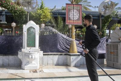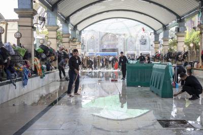 Le personnel du service des espaces entre les deux sanctuaires sacrés du sanctuaire d'al-Abbas (p) a poursuivi sa campagne de nettoyage et de préparation de la zone située entre les deux sanctuaires sacrés après la fin du pèlerinage d'Arbaeen.
