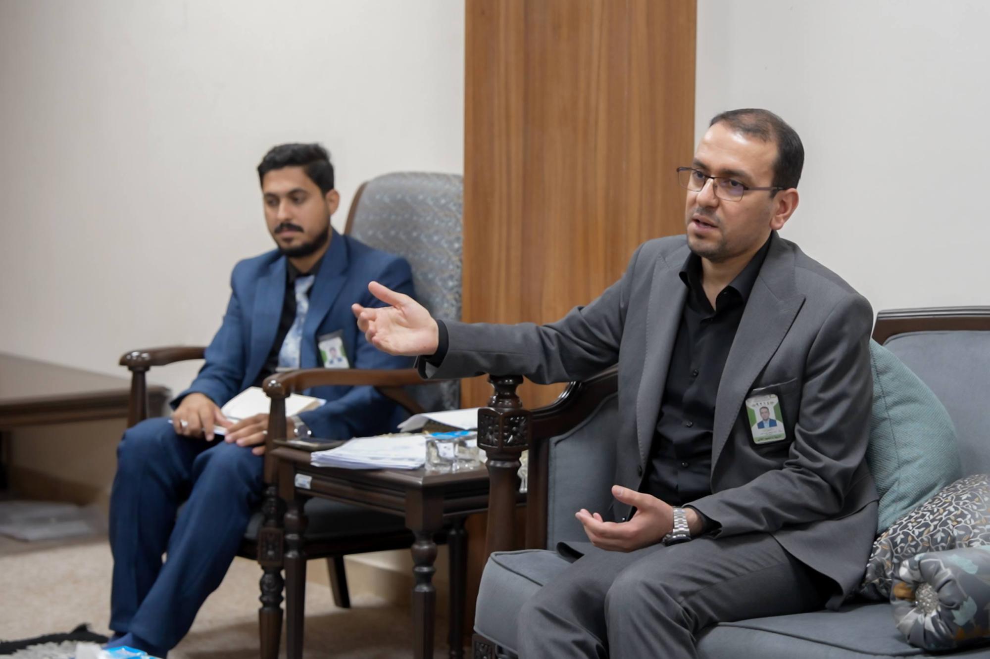 The Secretary General was accompanied by his deputy, Mr. Abbas Mousa Ahmed, and they were received by the head of the Education Department, Dr. Hassan Dakhel, along with several department staff members.