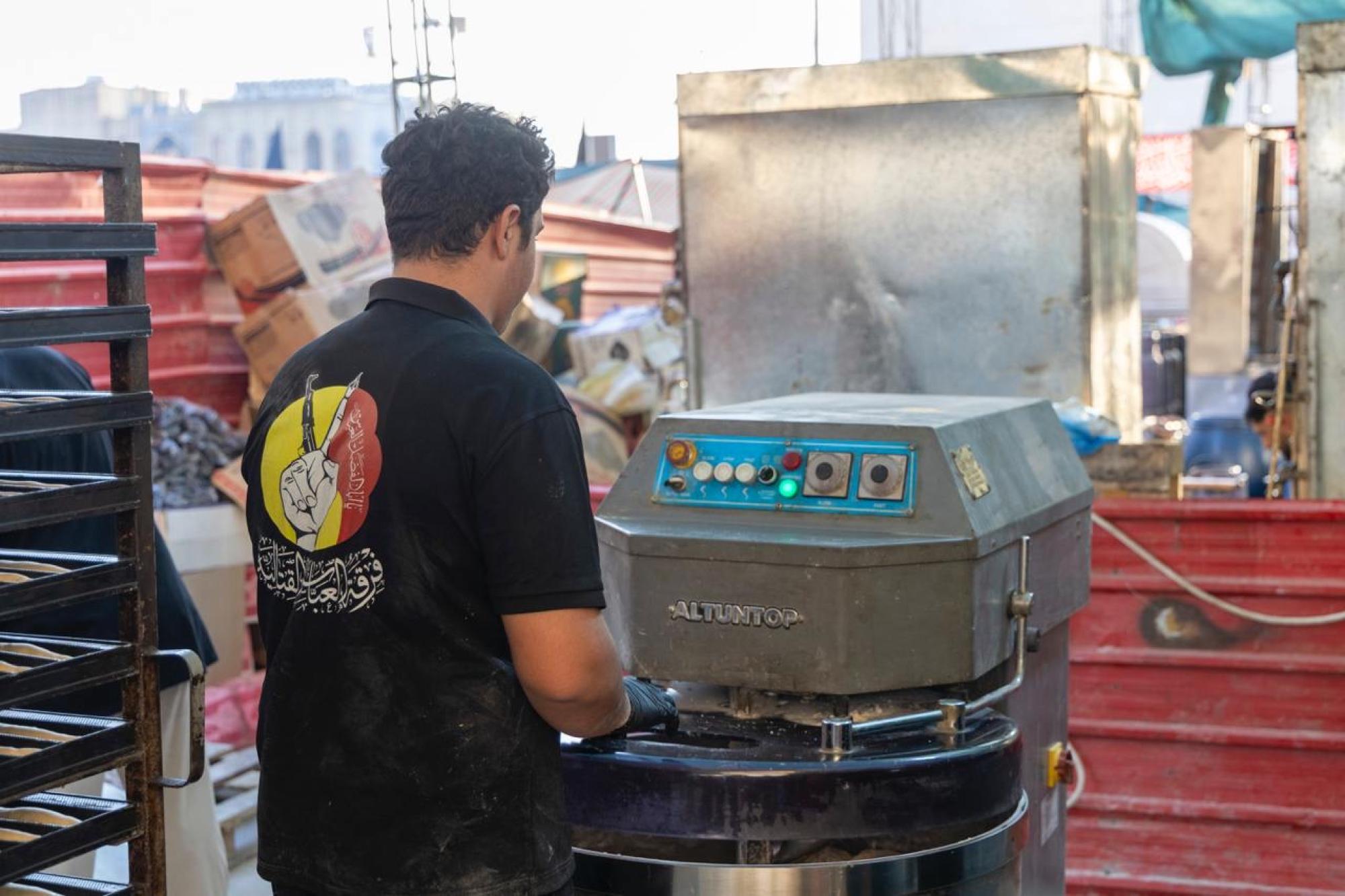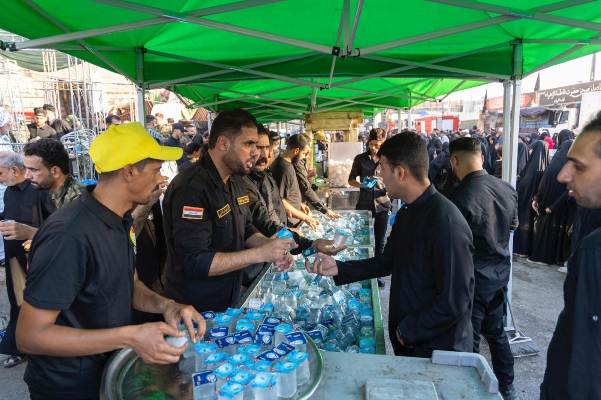 وتابع عامر أنَّ "الموكب يضم معملًا لإنتاج الثلج بواقع ٥ أطنان في اليوم الواحد، توزع جميعها على المواكب الخدمية، فضلًا عن خط لإنتاج الصمون، ينتج يوميًّا ٢٥ ألف رغيف؛ لدعم الموكب المركزي للفرقة، وكذلك المواكب الأخرى".