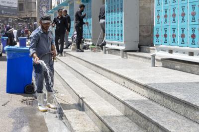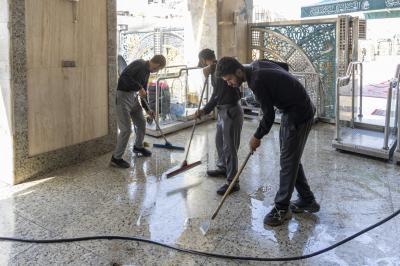وتضمَّنت الحملة التي أجرتها ملاكات شعبة النظافة التابعة للقسم تنظيف الشوارع والأرصفة المحيطة بصحن مرقد أبي الفضل العباس (عليه السلام)، وغسلها.