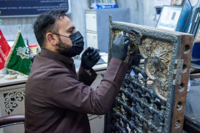 متحف الكفيل يباشر بصيانة أحد شبابيك مرقد أبي الفضل العباس (عليه السلام) القديمة