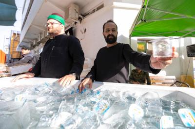 He indicated that the holy shrine has deployed two groups to distribute hot and cold beverages to visitors at the Bab al-Qibla for men and the northern courtyard for women, with more than 100,000 cups distributed so far.