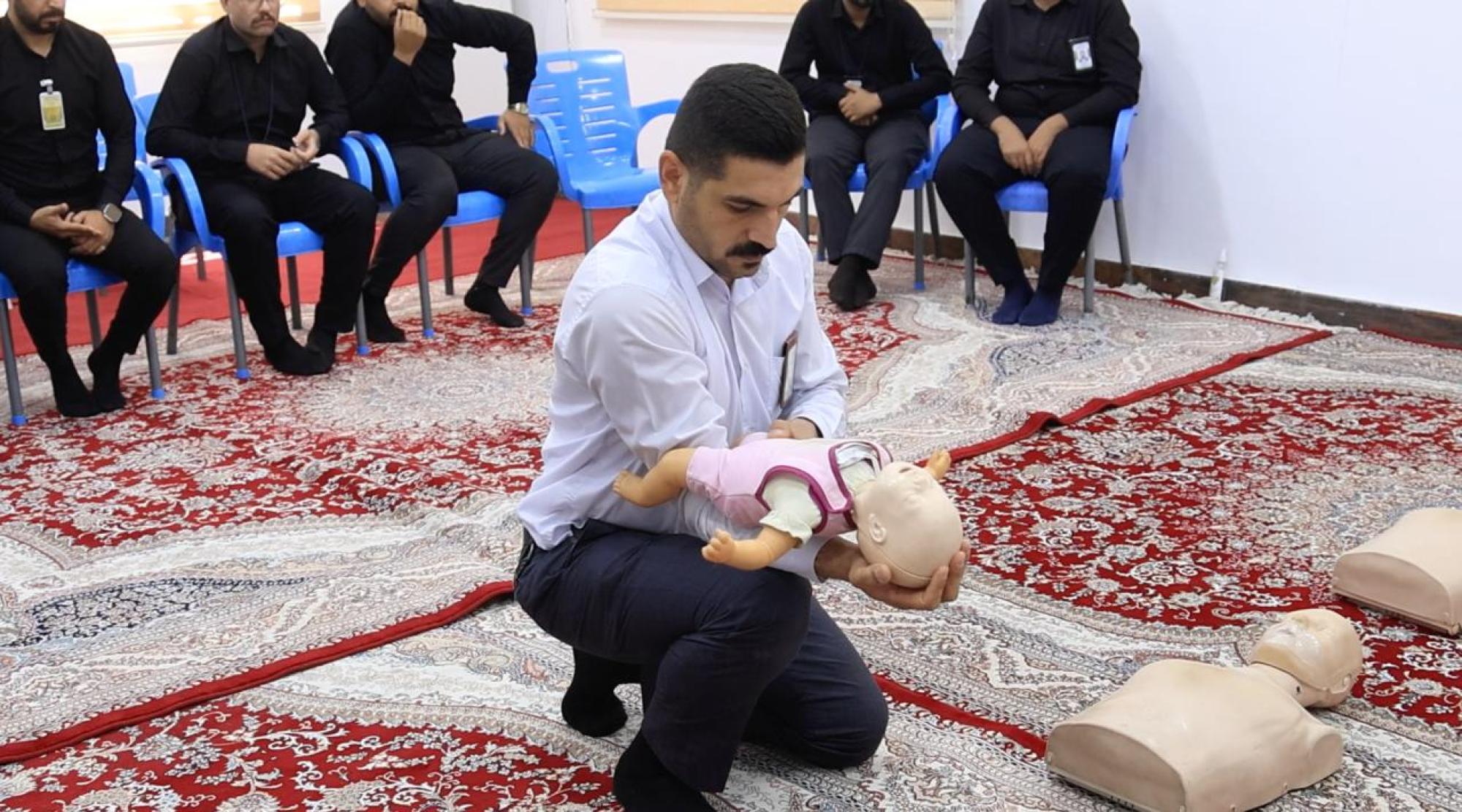 استأنف مركزُ الكفيل للصحّة والسلامة العامّة التابع للعتبة العبّاسية المقدّسة، دوراته التدريبية في مجال الإسعافات الأوّلية، ضمن برنامج (في كلّ بيتٍ مُنقِذ) لمنتسبي العتبة المقدّسة.