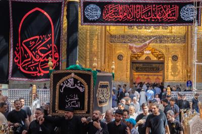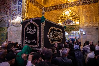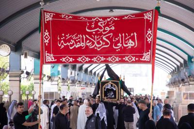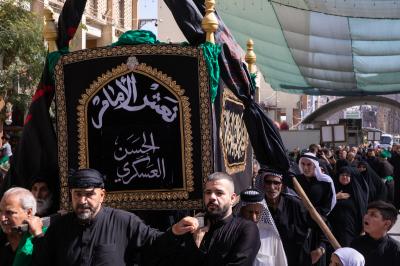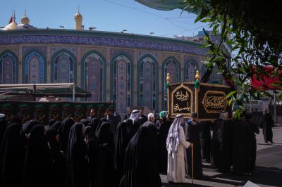 أحيا موكب أهالي كربلاء المقدسة ذكرى شهادة الإمام الحسن العسكري (عليه السلام) عبر إقامة مراسم تشييع النعش الرمزي عند مرقدي الإمام الحسين وأخيه أبي الفضل العباس (عليهما السلام).