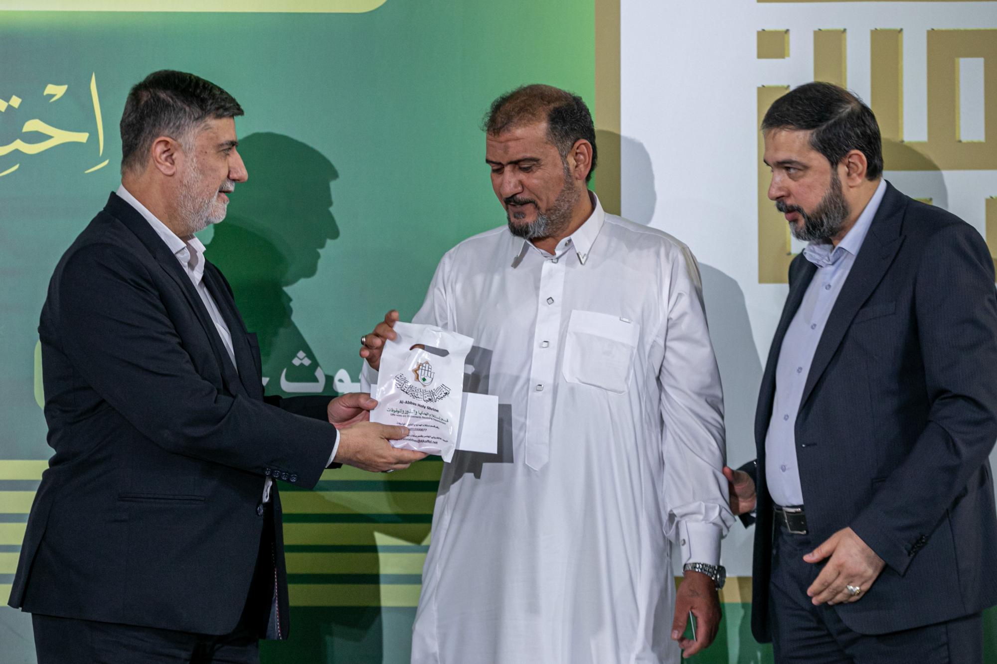 Y el evento, que se llevó a cabo en el patio de Bab al-Qibla del santuario de Aba al-Fadl al-Abbas (la paz sea con él), contó con la presencia de los responsables del santuario sagrado, así como de personalidades religiosas y académicas, junto con una multitud de visitantes que acudieron para celebrar esta auspiciosa ocasión.