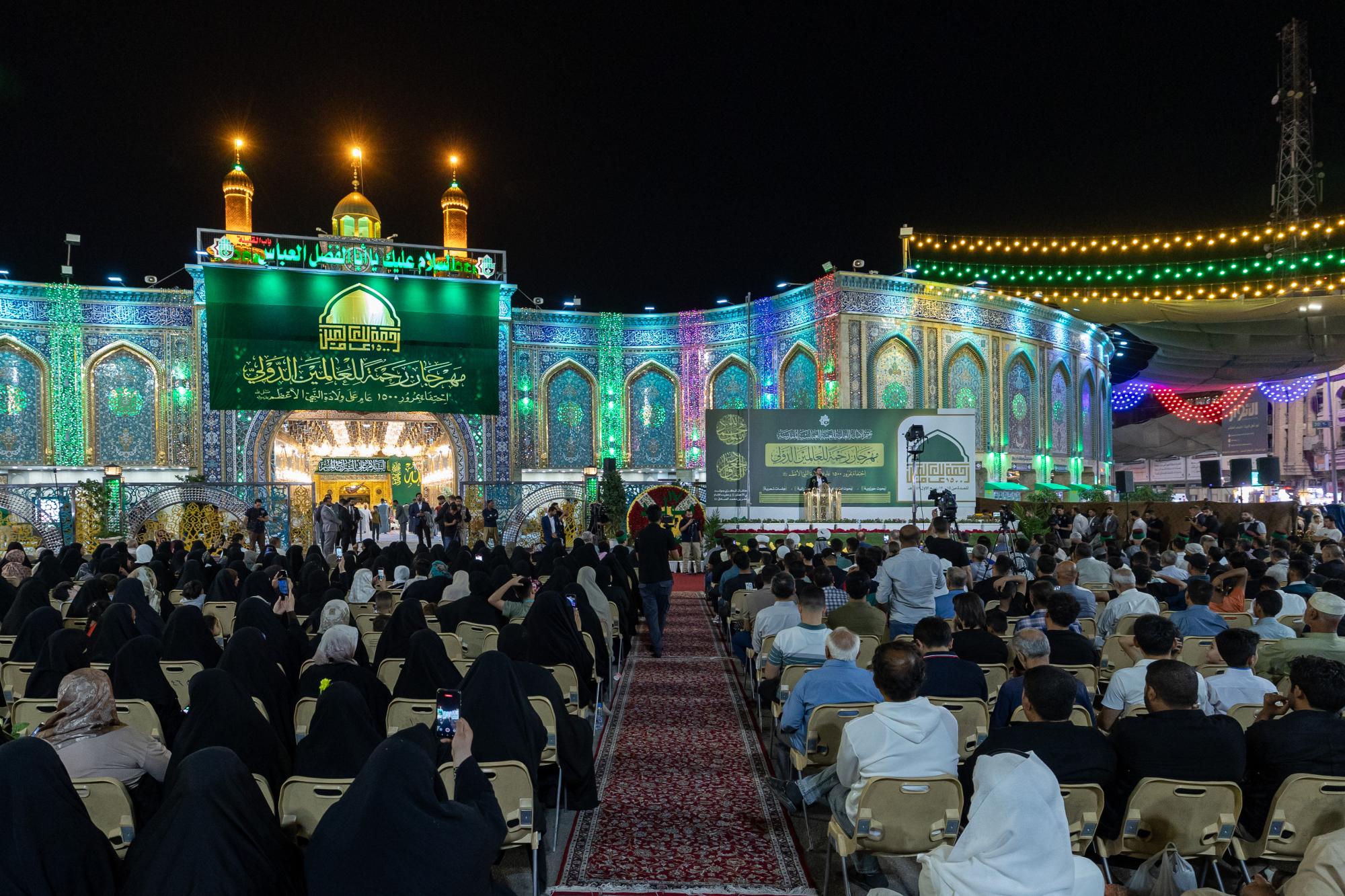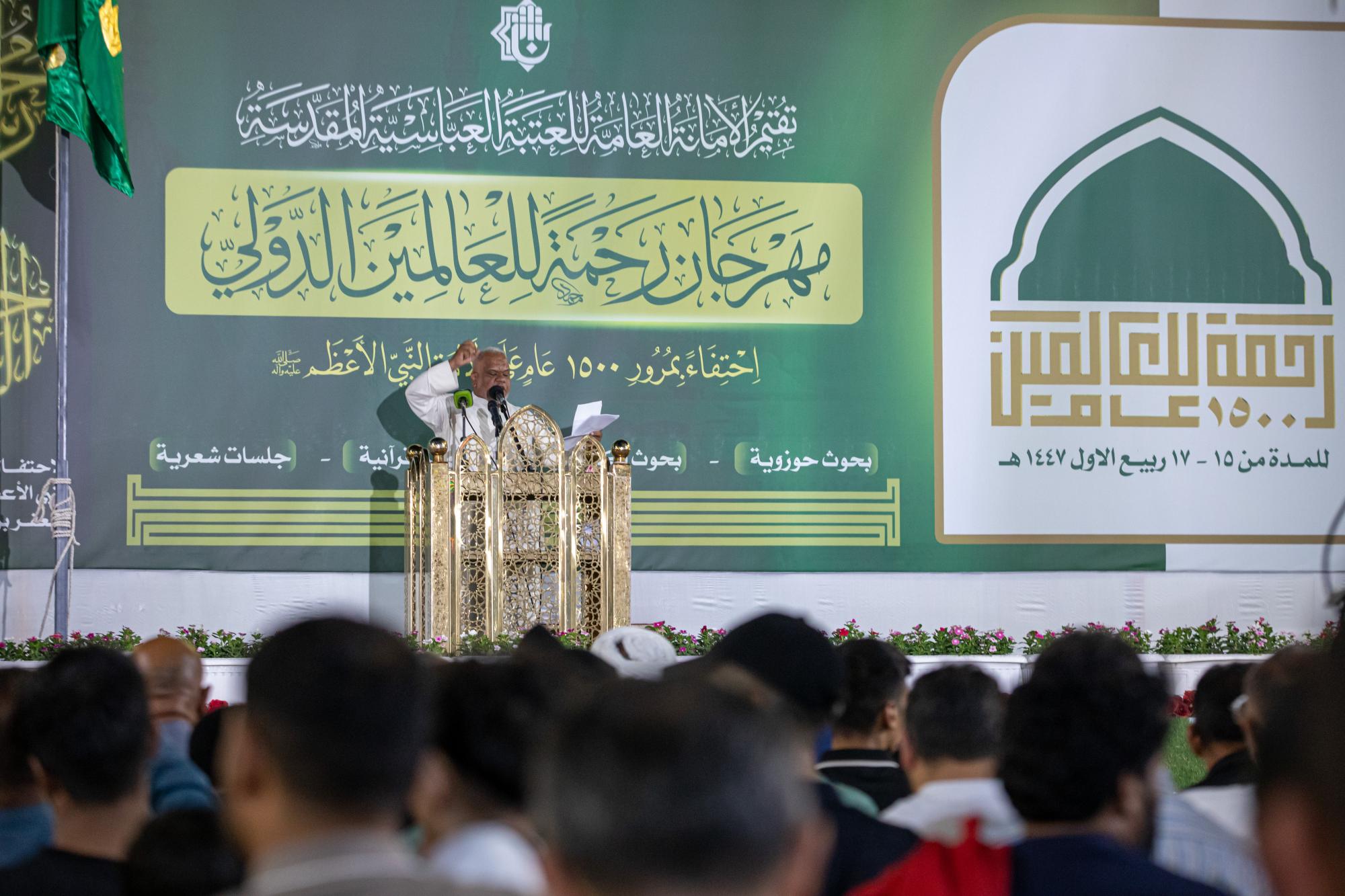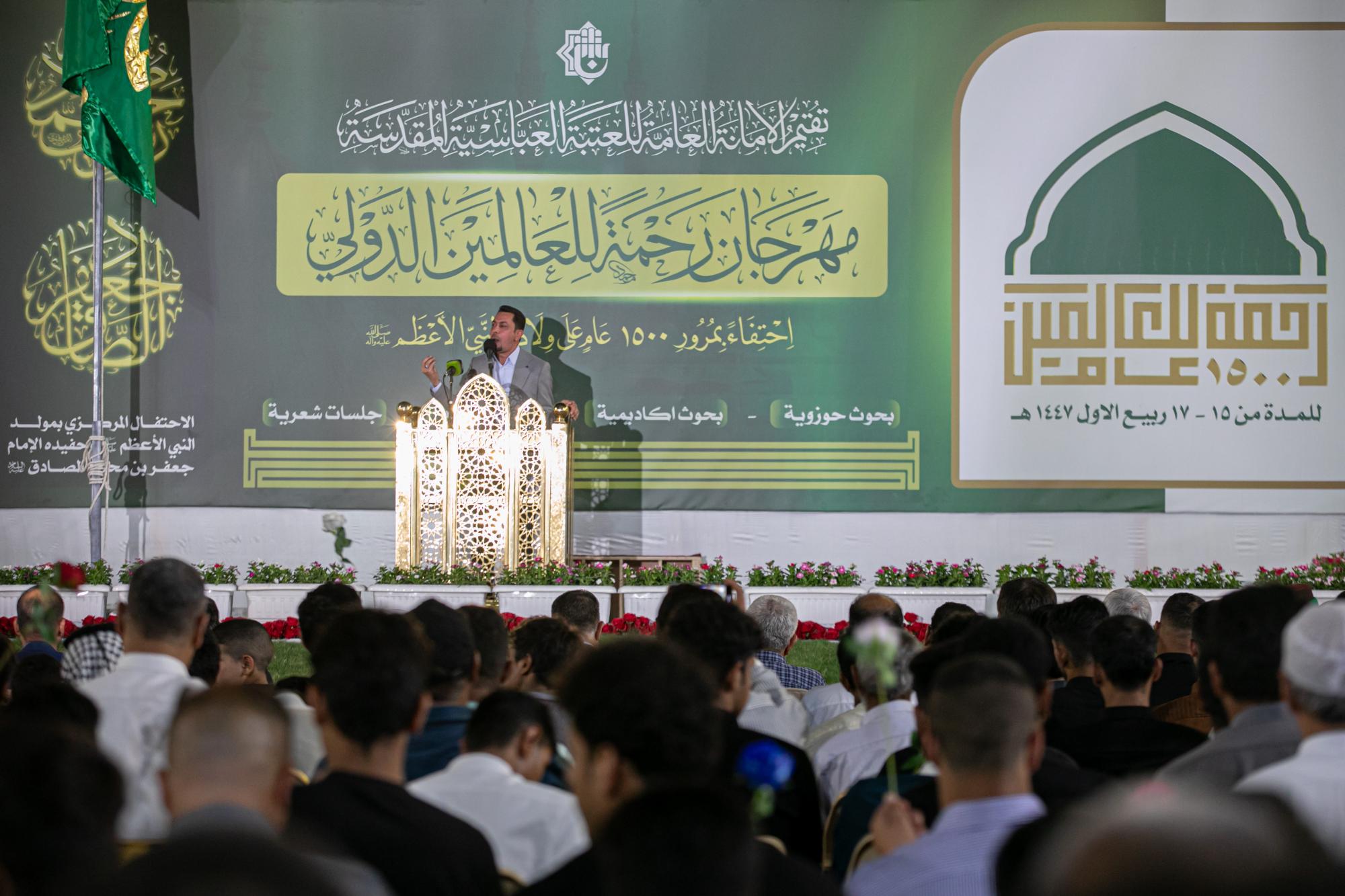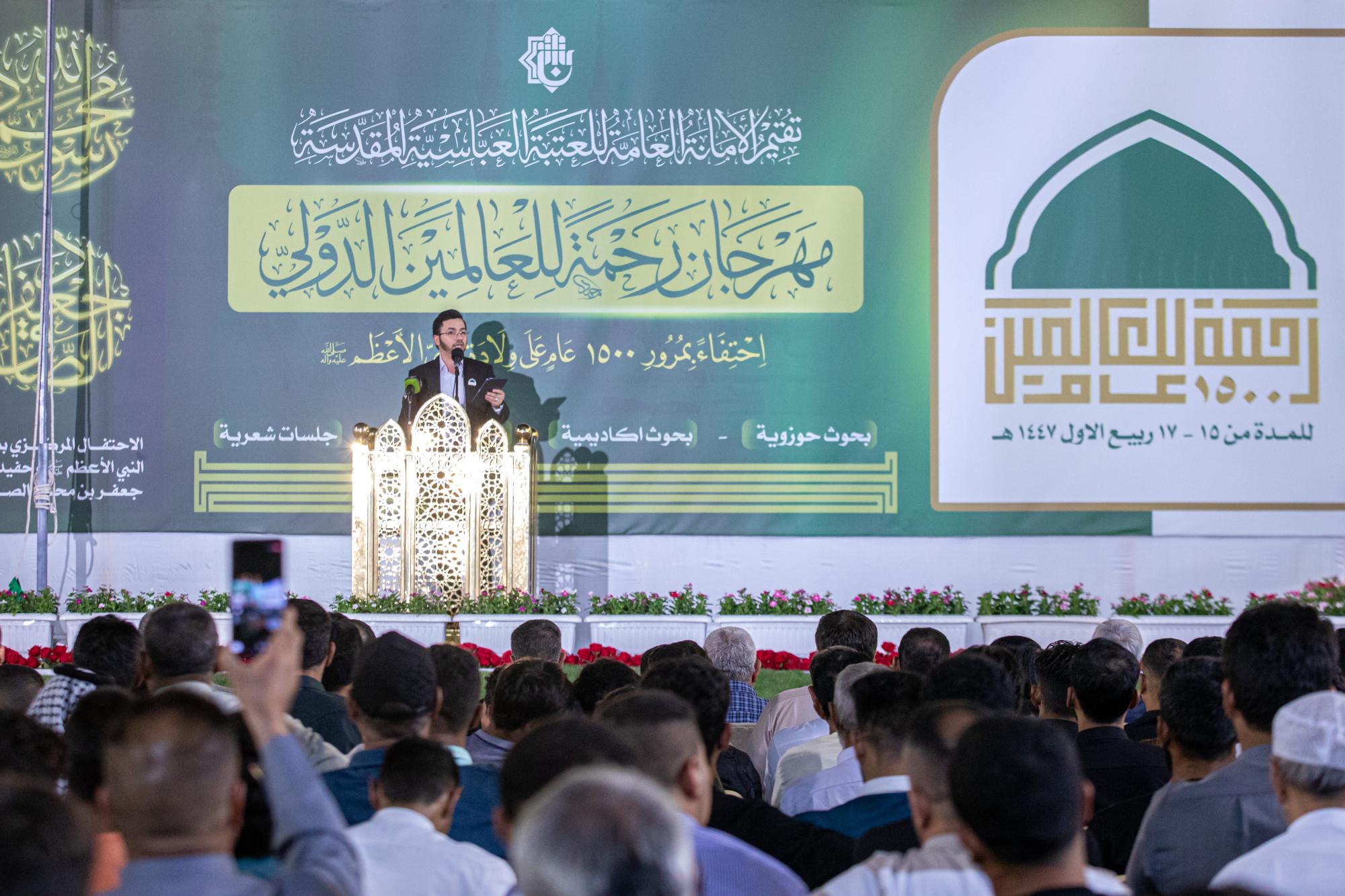 Y dijo el miembro del Consejo de Administración del Santuario Sagrado, el Sr. Afzal Al-Shami: "Las actividades del primer Festival Internacional de Rahmatan Lil-Alamin, que se celebra en conmemoración del 1500 aniversario del nacimiento del Profeta Muhammad (la paz sea con él y su familia), incluyeron una serie de actividades culturales y académicas especializadas, además de una feria del libro, entre las cuales estamos presenciando hoy la celebración central pública de esta bendita ocasión".