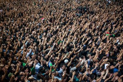 ترتفعُ الأيادي ملبّيةً نداء أبي الأحرار(عليه السلام): (ألا من مغيث يغيثنا).. فها هي القلوب قبل الحناجر تصدح بـ "يا لثارات الحسين".. وبيا لثارات كلّ قطرة دمٍ طاهرٍ أريقت على أرض كربلاء ظلماً وعدواناً..