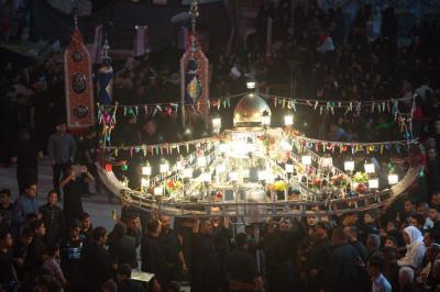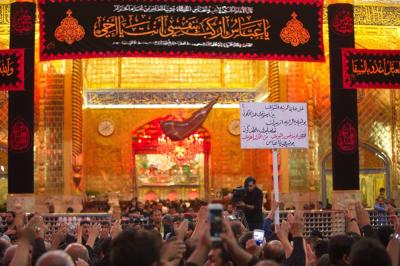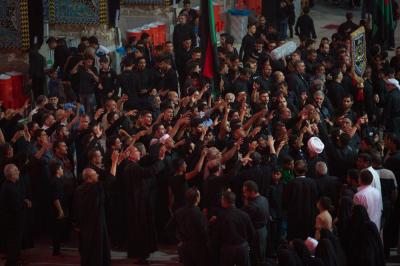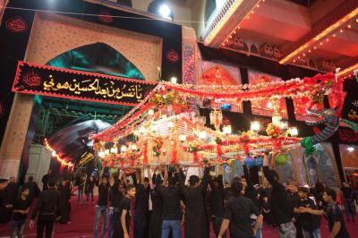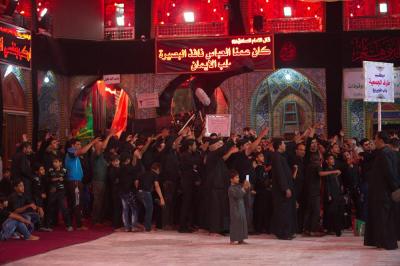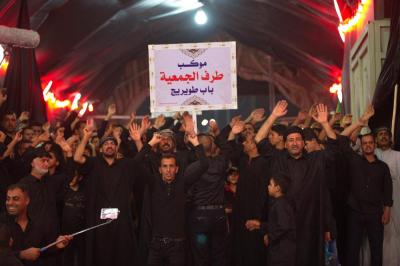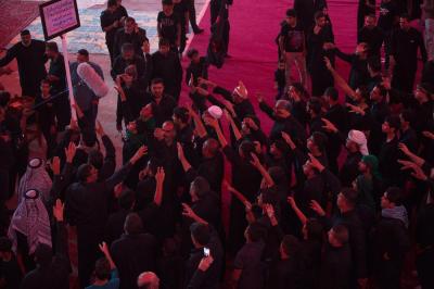 Les croyants font leur départ de la cour d'Abou fadhl al-Abbas paix soit sur lui, venant de toute Karbala et se dirigent vers le sanctuaire de Hossein paix soit sur lui sur le rythme des chants de condoléances et des airs tristes en rappelant d'une part aux gens l'importance des révolutions contre l'injustice où des foulent accueillaient ces défilés en s'y joignant avec les pleures et les frappes sur les torses.