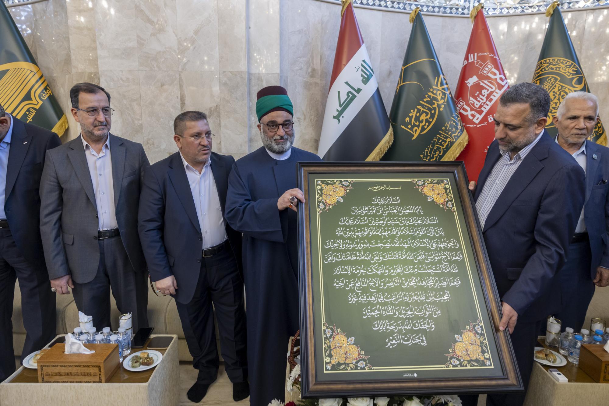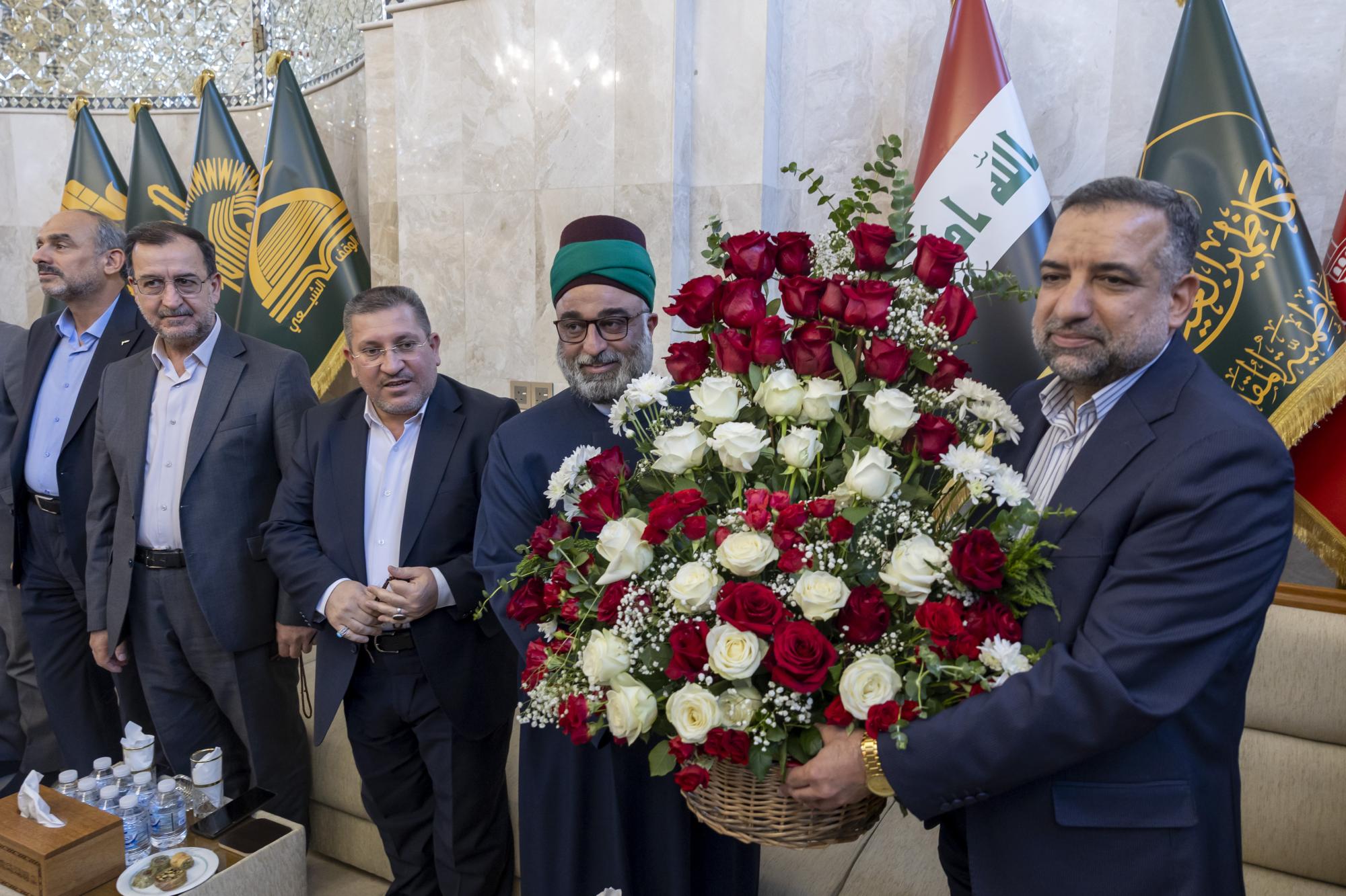 La délégation était dirigée par le Secrétaire général du Sanctuaire d'al-Abbas (p), M. Mustafa Murtadha Al-Dia'uddin, accompagné de son adjoint, l'ingénieur Abbas Musa Ahmed, ainsi que des membres du Conseil d'administration et des responsables.
