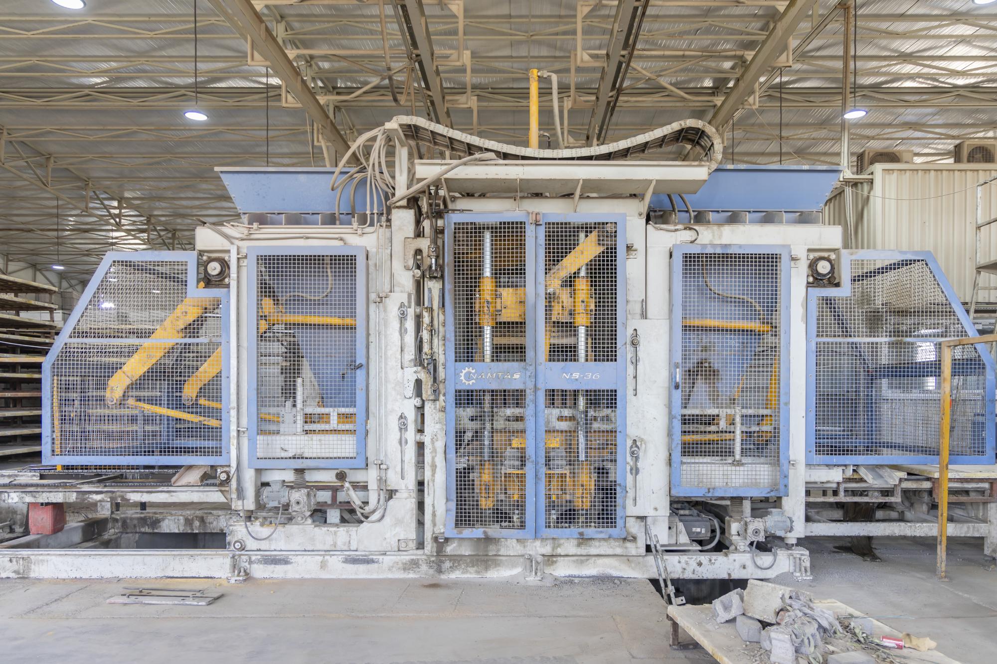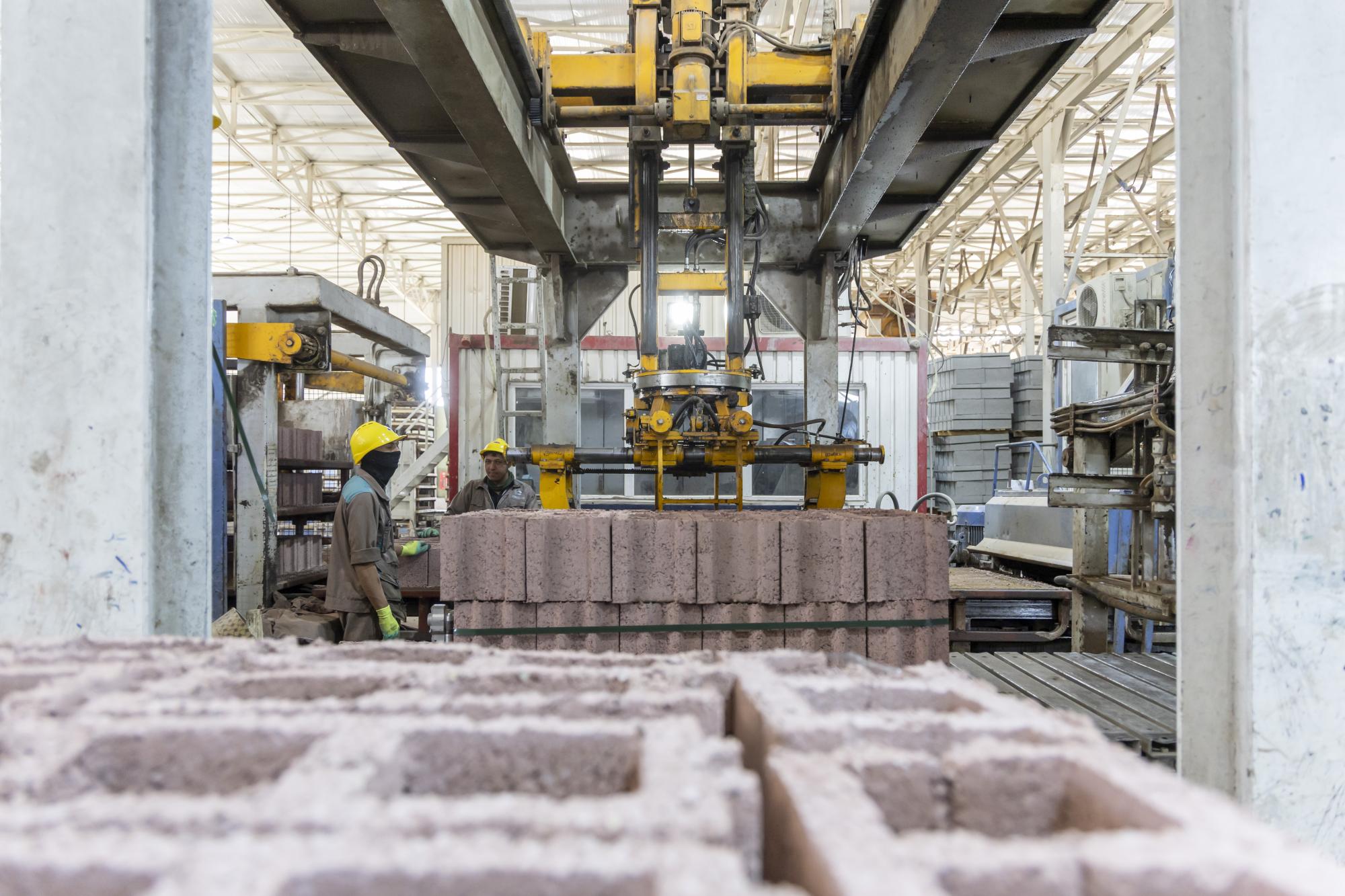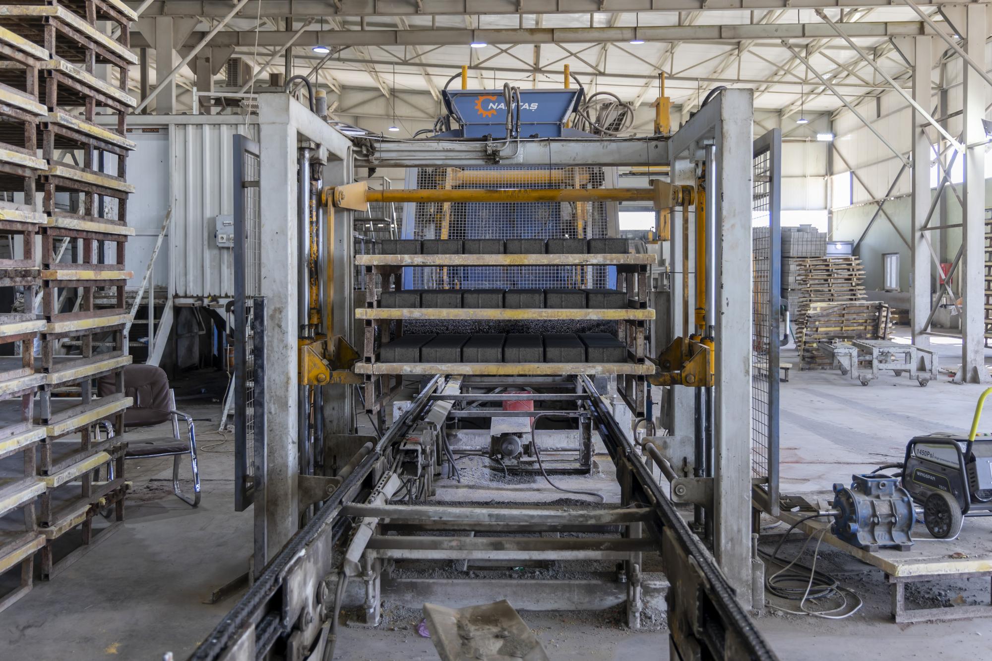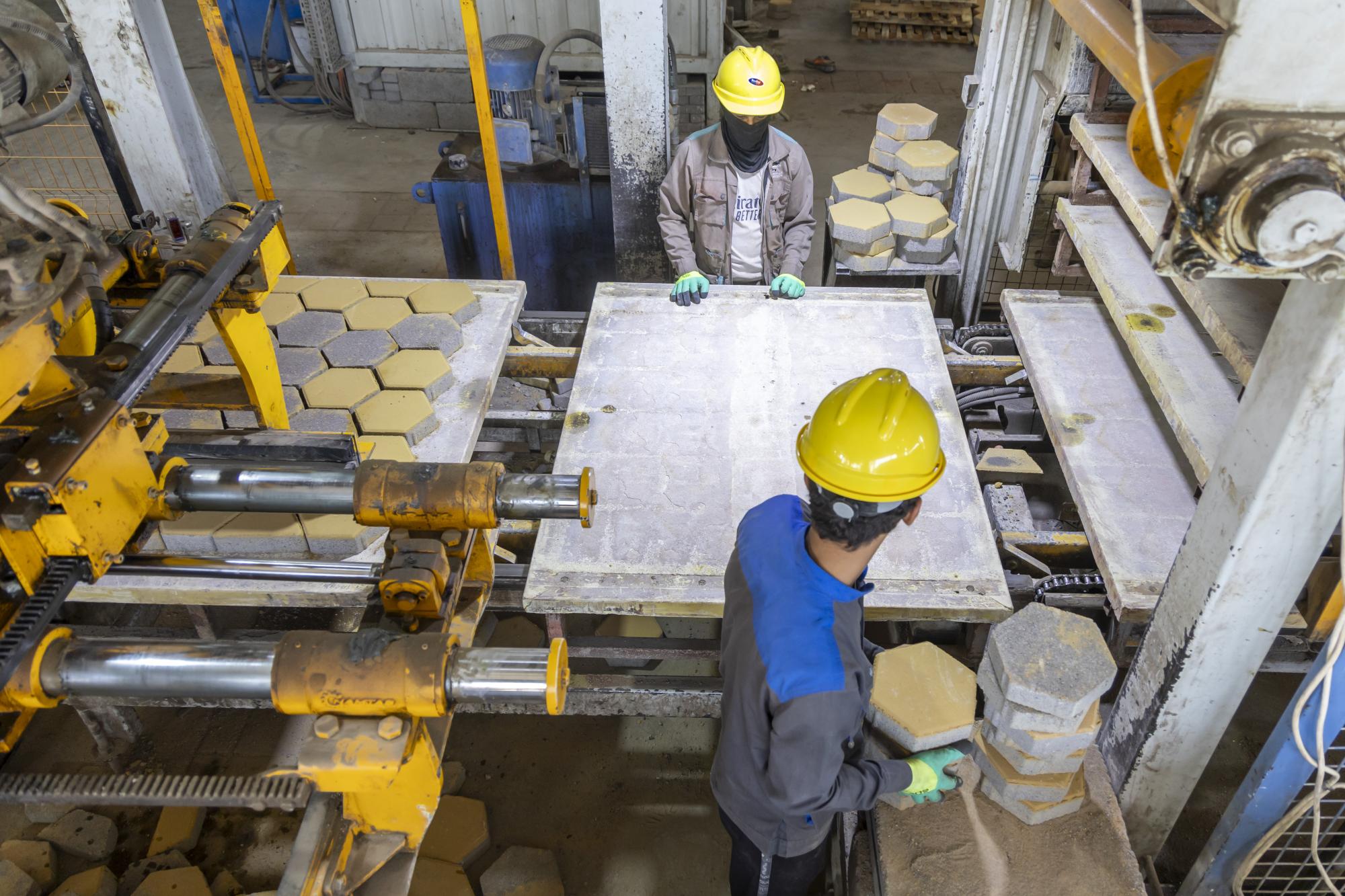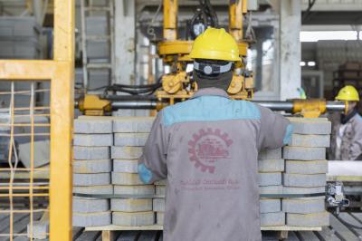 وأضاف أن "الموقع يضمّ ثلاثة خطوطٍ إنتاجية بينها معملٌ لإنتاج الخرسانة، بقدرةٍ إنتاجيّة تبلغ 120 مترًا مكعّبًا في الساعة، فضلًا عن إنتاج 12 ألف بلوكة و1200 مترٍ مربّع من المقرنص يوميًا".