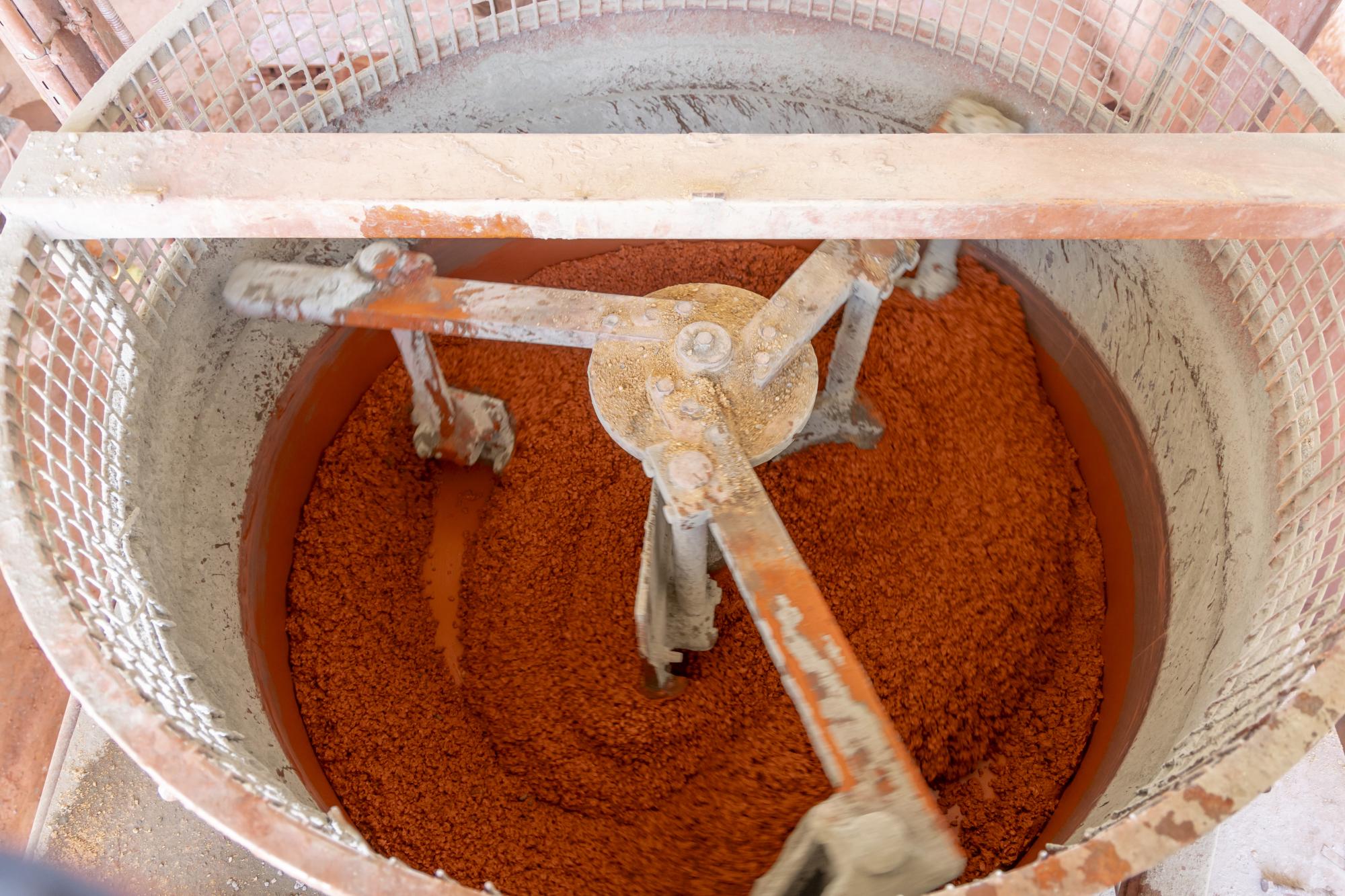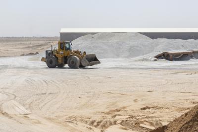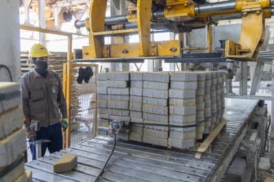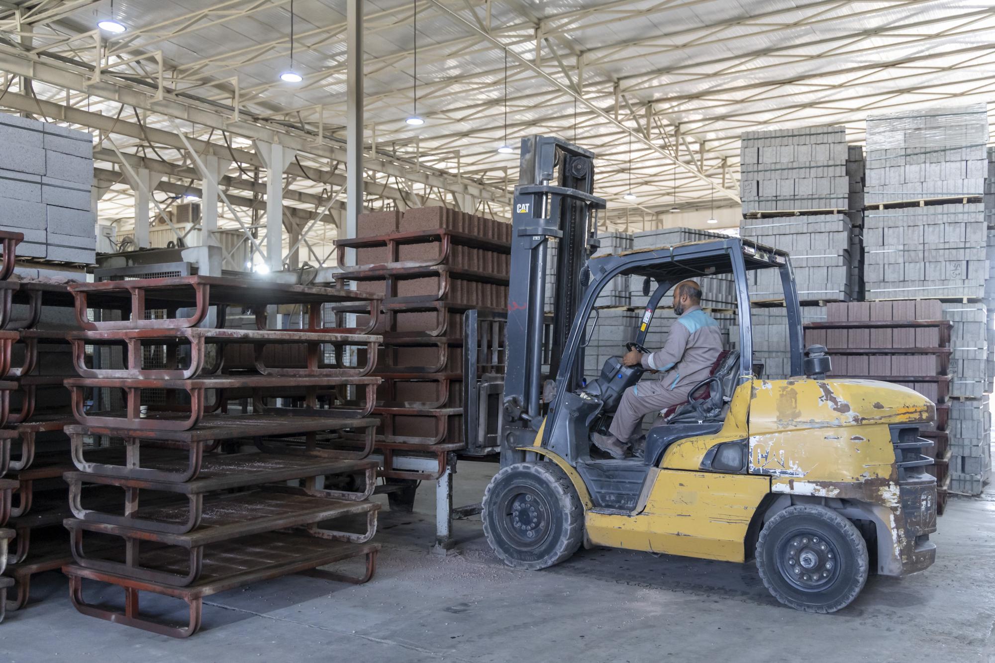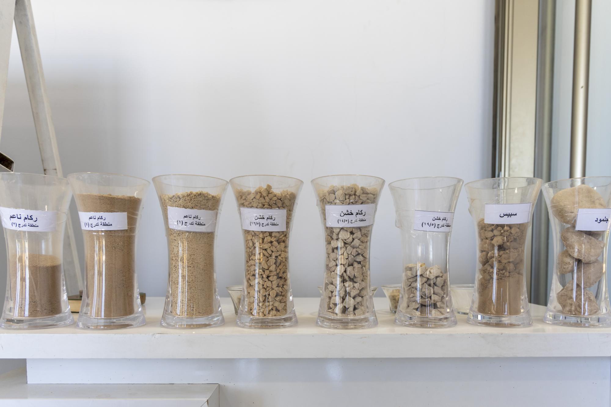 وأضاف أن "الموقع يضمّ ثلاثة خطوطٍ إنتاجية بينها معملٌ لإنتاج الخرسانة، بقدرةٍ إنتاجيّة تبلغ 120 مترًا مكعّبًا في الساعة، فضلًا عن إنتاج 12 ألف بلوكة و1200 مترٍ مربّع من المقرنص يوميًا".