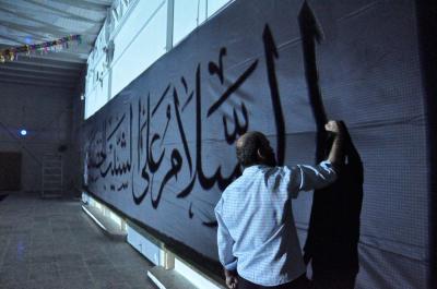 حرم حضرت عباس علیہ السلام نے اس کام کو متعدد مراحل میں مکمل کیا پہلے مرحلےمیں ایک ہزار مربع میٹر سیاہ کپڑا چادروں اور بینرز کی صورت میں کربلا کے اہم مقامات پہ آویزاں کیااور خط ثلث میں لکھی ہوئی تعزیتی پیغامات اور امام حسین علیہ السلام اور ان کے اصحاب کو خراج عقیدت یش کرنے کے لئے ہزاروں بینرز کربلا کے ہر اہم مقام پہ لگائے۔