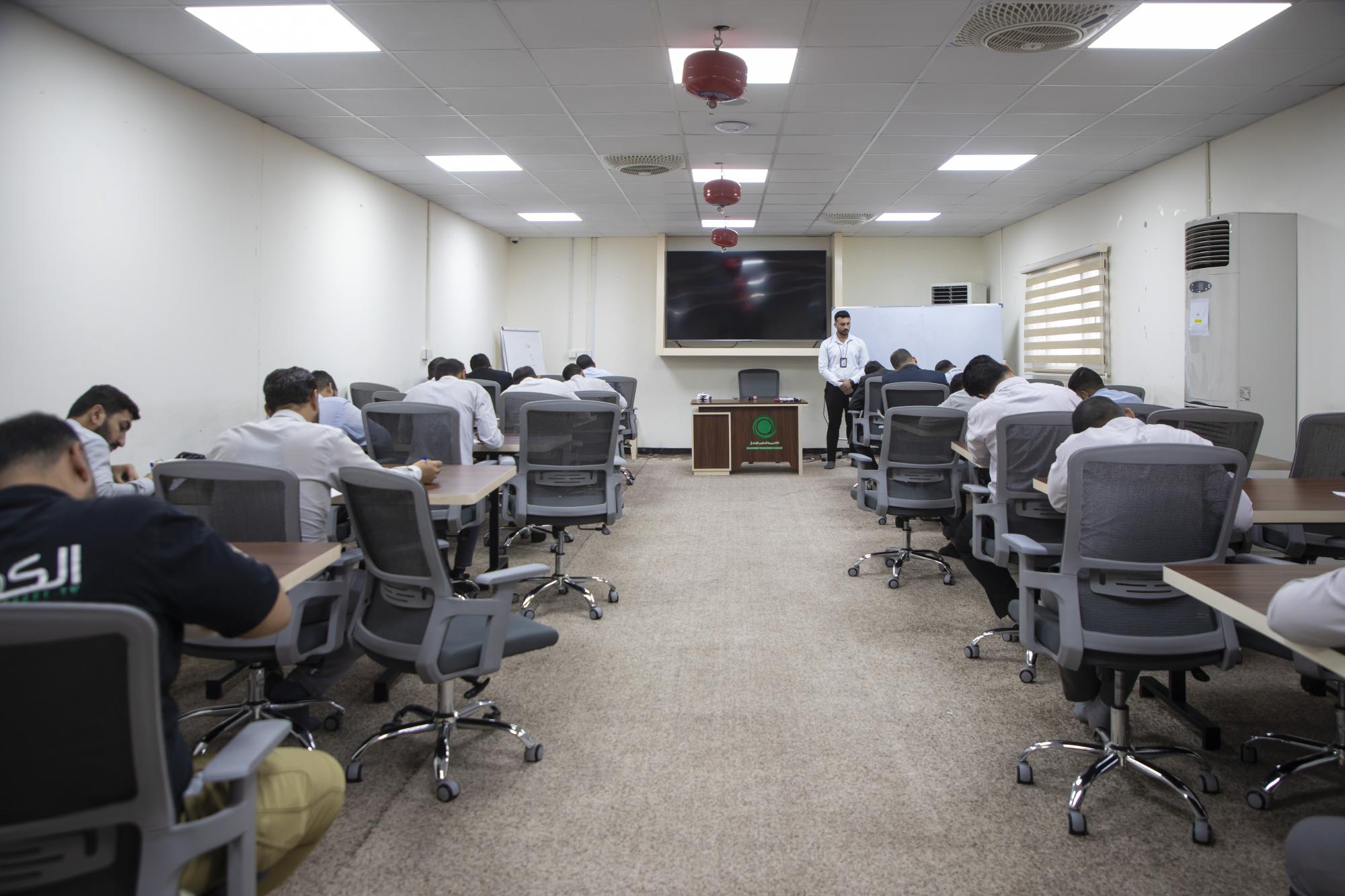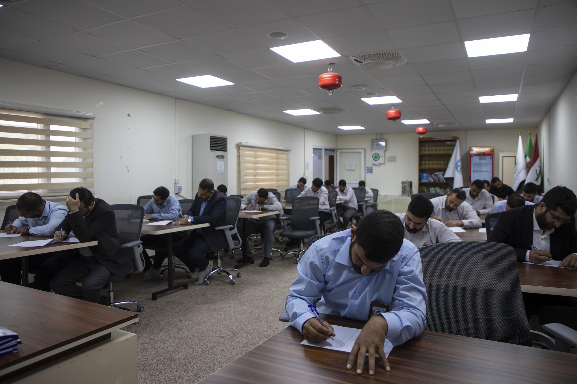 وأوضح " يؤدي المتقدمون أيضًا اختبار القدرات المعرفية، الذي يُعد من أبرز محطات القبول، ويهدف إلى قياس قابلية المنتسب على الفهم والتحليل واستيعاب المعلومات، وهو اختبار مصمم خصيصًا لبرنامج التطوير الإداري ويُعد من أبرز الاختبارات على مستوى العراق في هذا المجال".