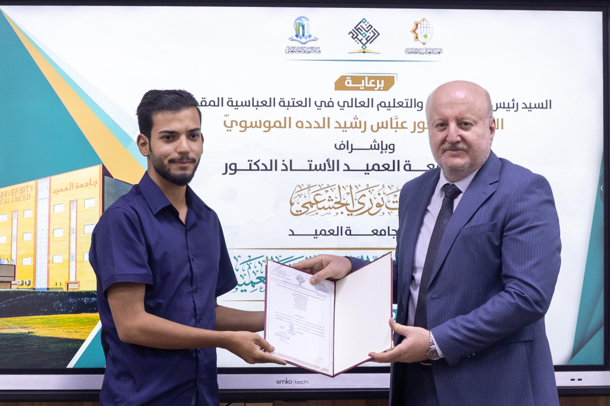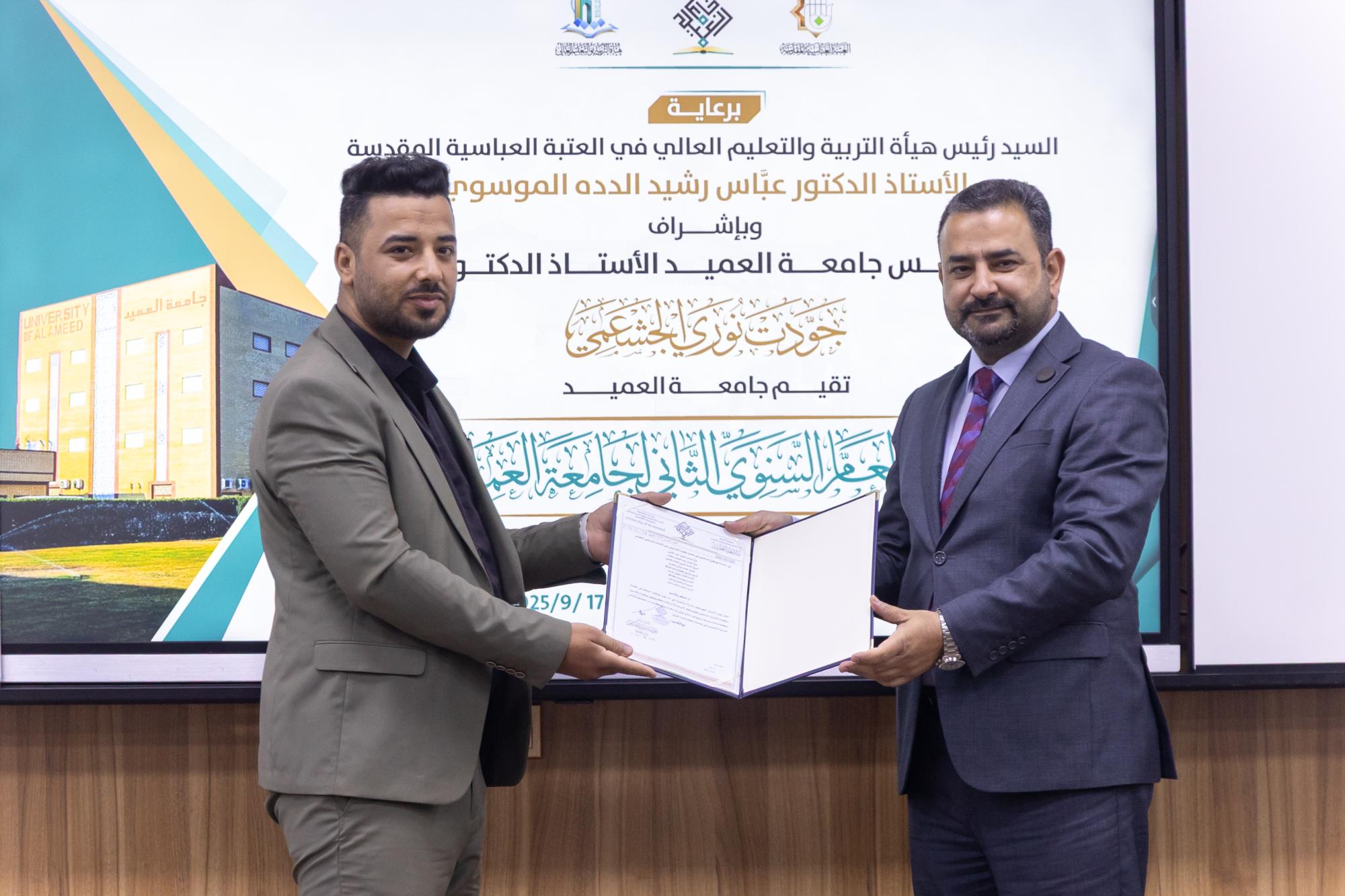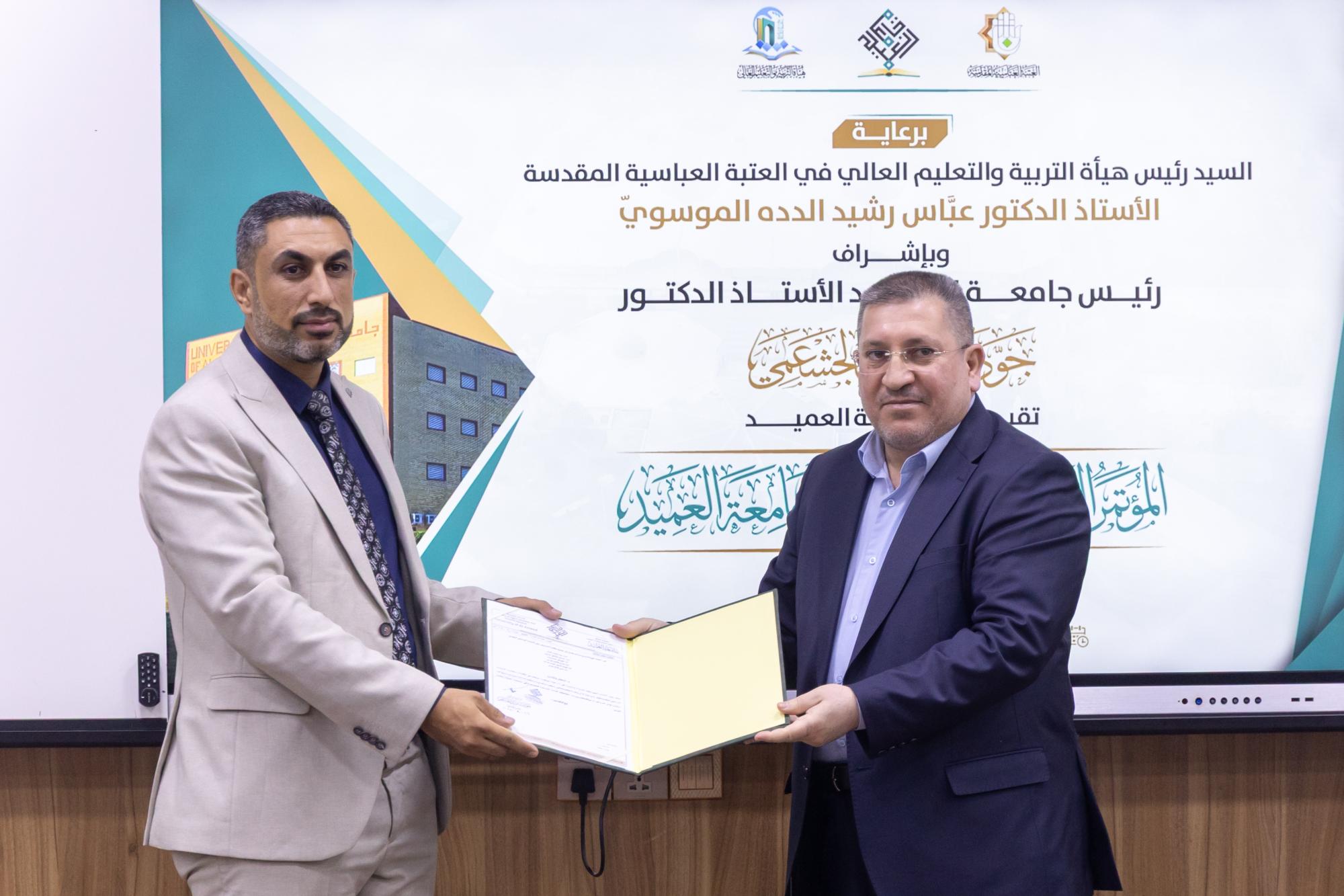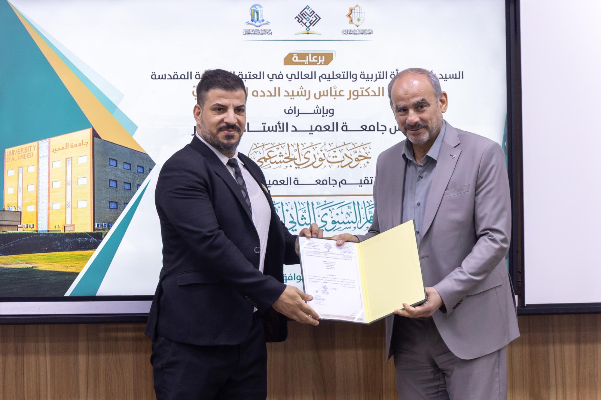 وتناوب على التكريم كلًا من نائب الأمين العام للعتبة المقدسة السيد عباس موسى أحمد، ورئيس هيأة التربية والتعليم العالي فيها الدكتور عباس الدده الموسوي، ومساعد رئيس الجامعة للشؤون العلمية الدكتور ميثم حميد القنبر، ومساعد رئيس الجامعة للشؤون الإدارية والقانونية الدكتور مشتاق عبد الكريم.
