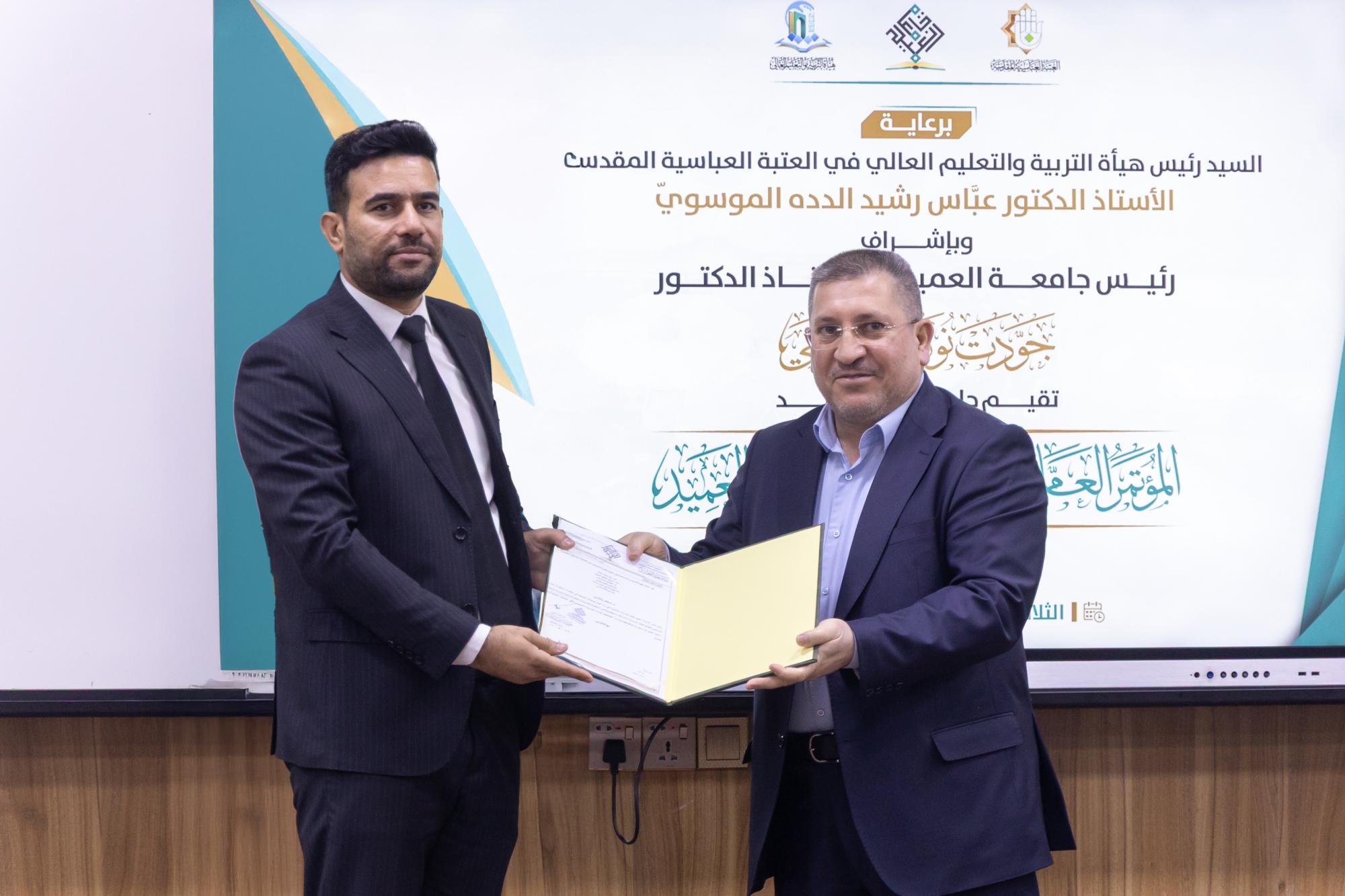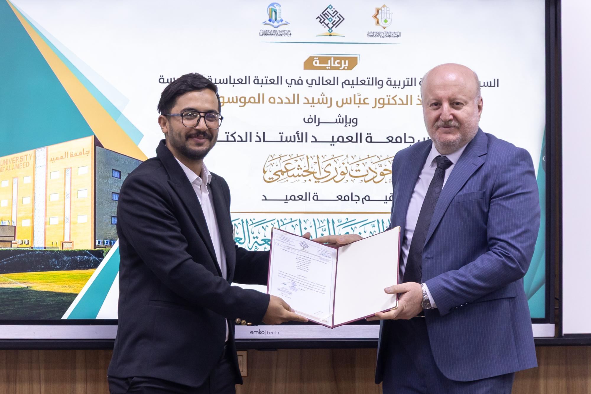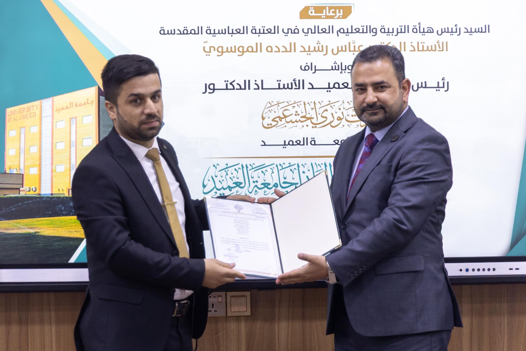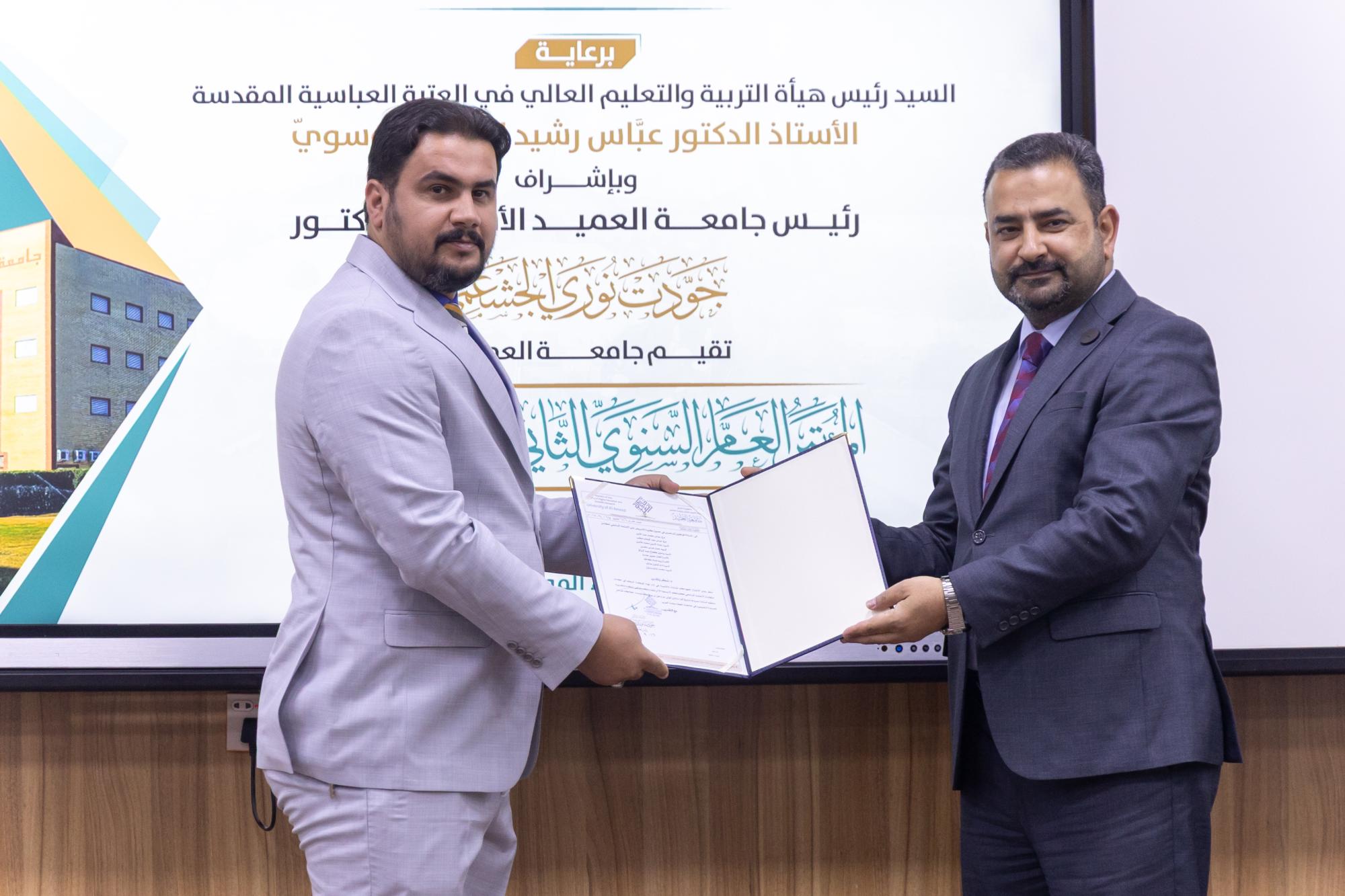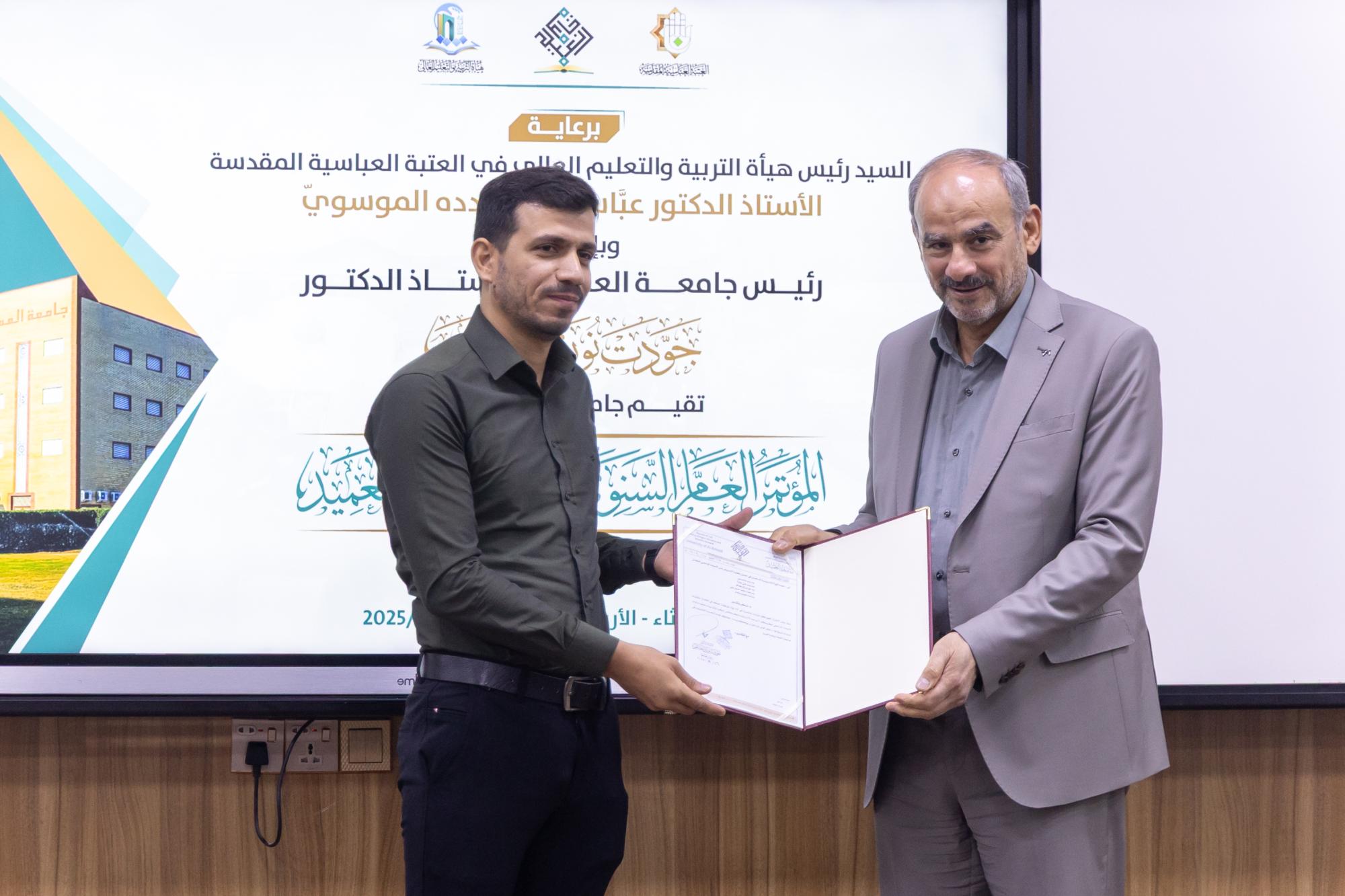 وتناوب على التكريم كلًا من نائب الأمين العام للعتبة المقدسة السيد عباس موسى أحمد، ورئيس هيأة التربية والتعليم العالي فيها الدكتور عباس الدده الموسوي، ومساعد رئيس الجامعة للشؤون العلمية الدكتور ميثم حميد القنبر، ومساعد رئيس الجامعة للشؤون الإدارية والقانونية الدكتور مشتاق عبد الكريم.