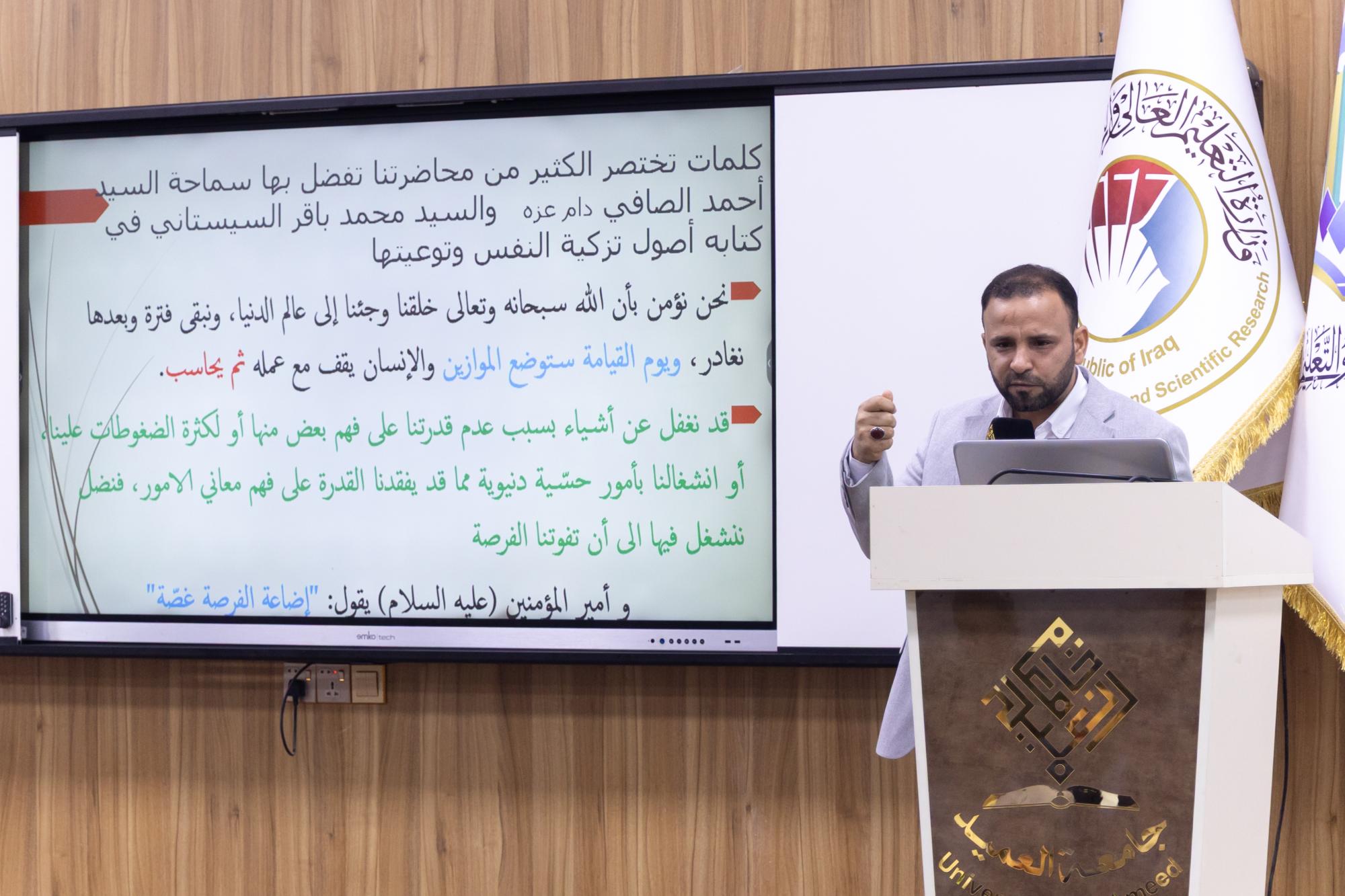 کانفرنس کے پہلے روز کا آغاز روضہ مبارک حضرت عباس(ع) کے استقبالیہ پیام سے ہوا، جس کے بعد (نظرة خاطفة في الإدارة) "ادارہ پر ایک طائرانہ نظر" کے عنوان سے ایک بصیرت افروز علمی لیکچر پیش کیا گیا، جو کہ علامہ سید احمد صافی کے انتظامی موضوعات پر مشتمل سلسلہ دروس کا خلاصہ تھا۔