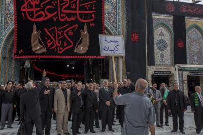 استمراراً لسلسلة المواكب الحسينية الوافدة الى حرم الإمام الحسين وأخيه أبي الفضل العباس (عليهما السلام)، شهدت العتبتان المقدستان الحسينية والعباسية صباح اليوم (الثلاثاء 6 محرم 1437هـ، الموافق 20 تشرين الأول 2015م) دخول موكب عزاء موحد، ضم أساتذة وطلبة جامعة كربلاء وجامعة أهل البيت والمعهد التقني؛ ليجددوا العزاء للإمام الحسين وأهل بيته الأطهار (عليهم السلام)، حيث صدحت حناجرهم لتعبر عن عمق المصيبة والفاجعة التي وقعت على الإمام الحسين وأهل بيته الأطهار (عليهم السلام) في واقعة الطف الخالدة، مؤكدين في الوقت نفسه على التمسك بالنهج الحسيني والطريق الذي سلكه (عليه السلام) وهو طريق التضحية والشهادة، الذي تستضيء به الأجيال على مر العصور، ليختتم الموكب بعد ذلك في حرم الإمام الحسين (عليه السلام) بقصائد ومجلس عزاء.