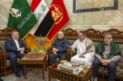 وكان في استقبالهم، نائبُ الأمين العام للعتبة المقدّسة السيد عباس موسى أحمد، ورئيسُ المَجمَع العلميّ للقرآن الكريم الدكتور مشتاق العلي.