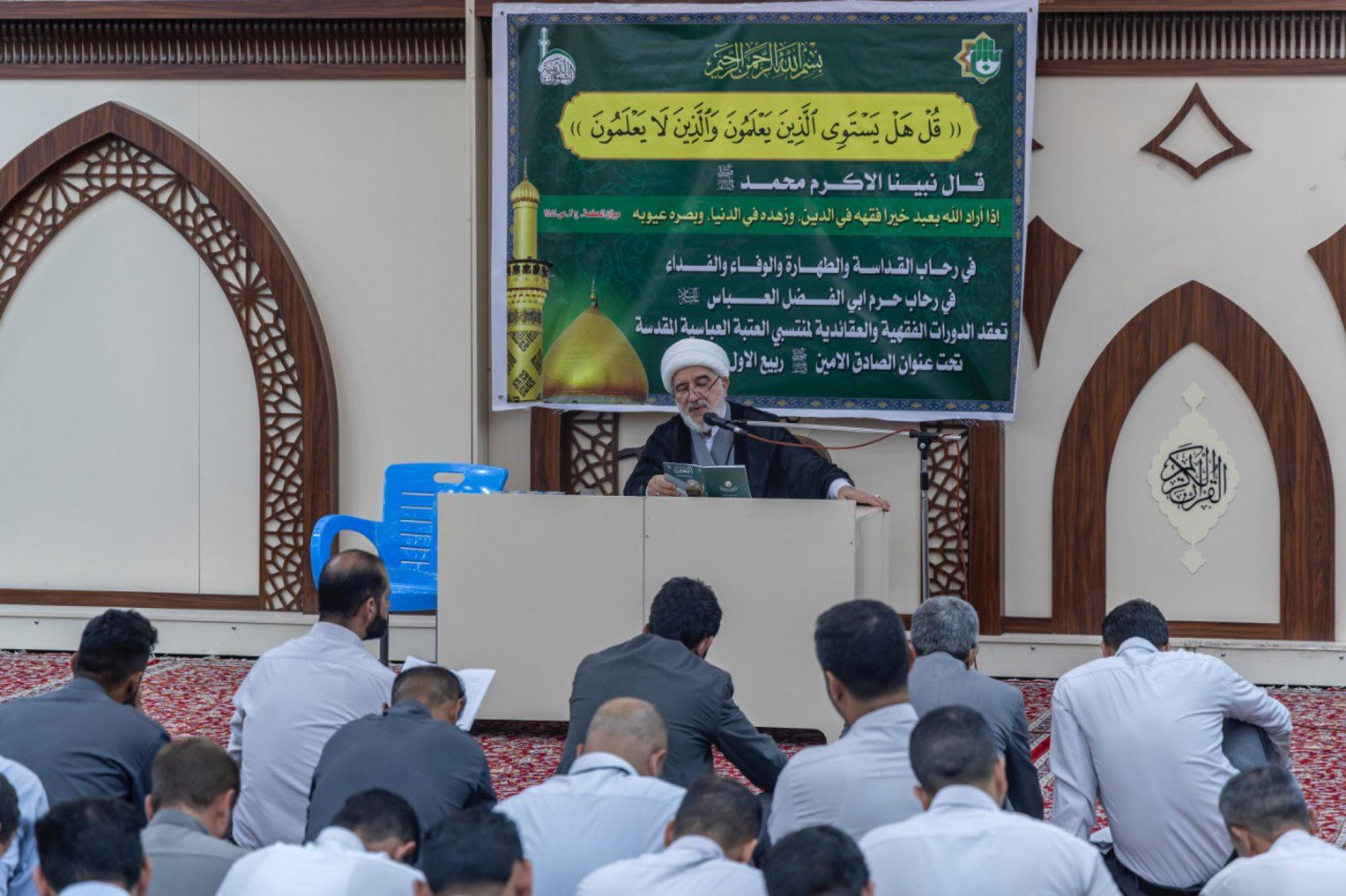 يواصل قسم الشؤون الدينية في العتبة العباسية المقدسة تنظيم دورات فقهية وعقائدية، ضمن برنامج تثقيفي يستهدف جميع المنتسبين؛ بهدف تعزيز مستواهم الديني والمعرفي.