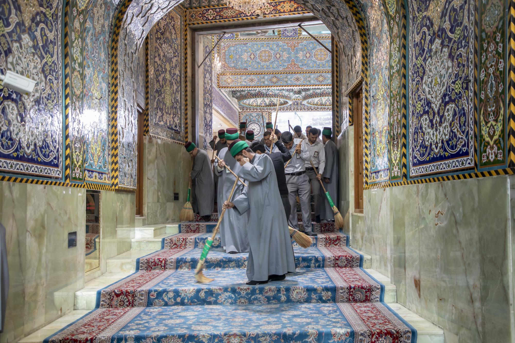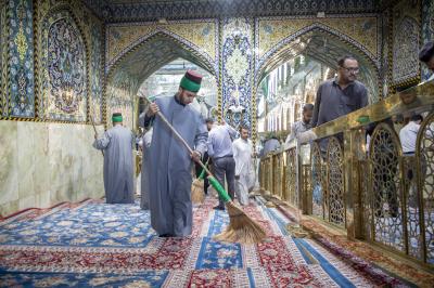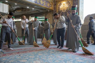 وتتضمّن الأعمال تنظيف الصحن الشريف وترتيب السجاد الموزع فيه وفي مداخل العتبة المقدسة، إضافةً إلى أعمال إدامة الشباك الطاهر لأبي الفضل العباس (عليه السلام) عَبرَ التعطير والتبخير.