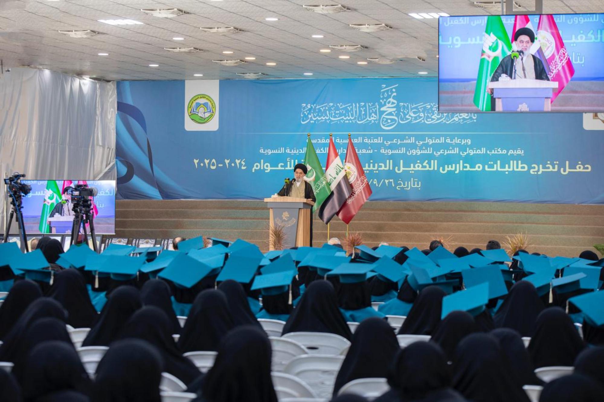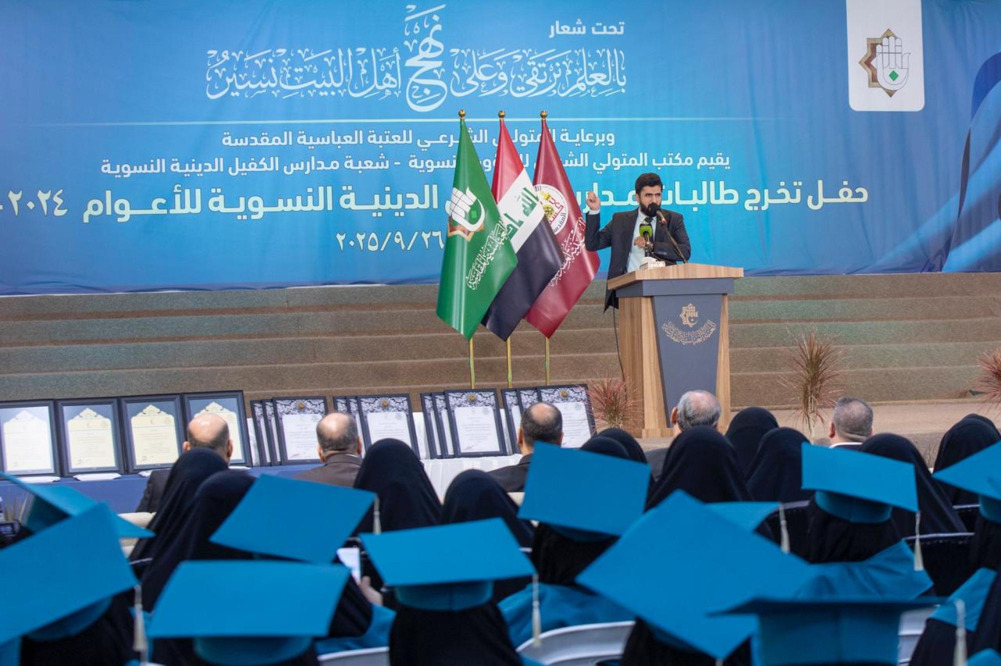 وتنظم الحفل شعبة مدارس الكفيل الدينية النسوية التابعة لمكتب المتولي الشرعي للشؤون النسوية في العتبة المقدسة، تحت شعار (بالعلم نرتقي وعلى نهج أهل البيت -عليهم السلام- نسير).