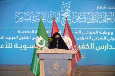 جاء ذلك في أثناء الكلمة التي ألقتها السيدة أفراح امتحان، إحدى خريجات مدارس الكفيل، في حفل تخرج طالبات شعبة مدارس الكفيل الدينية النسوية التابعة لمكتب المتولي الشرعي للشؤون النسوية في العتبة المقدسة، الذي يُقام تحت شعار (بالعلم نرتقي وعلى نهج أهل البيت -عليهم السلام- نسير).