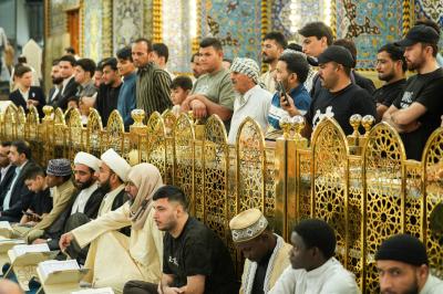 وشهد المحفل الذي ينظمه مركز المشاريع القرآنية التابع للمجمع، مشاركة وفد من المشروع القرآني لطلبة العلوم الدينية الذي يشرف عليه معهد القرآن الكريم في النجف الأشرف، ووفد دار القرآن الكريم/ فرع البصرة التابع للعتبة الحسينية المقدسة، إلى جانب عدد من القرّاء وجمع غفير من الزائرين الكرام.