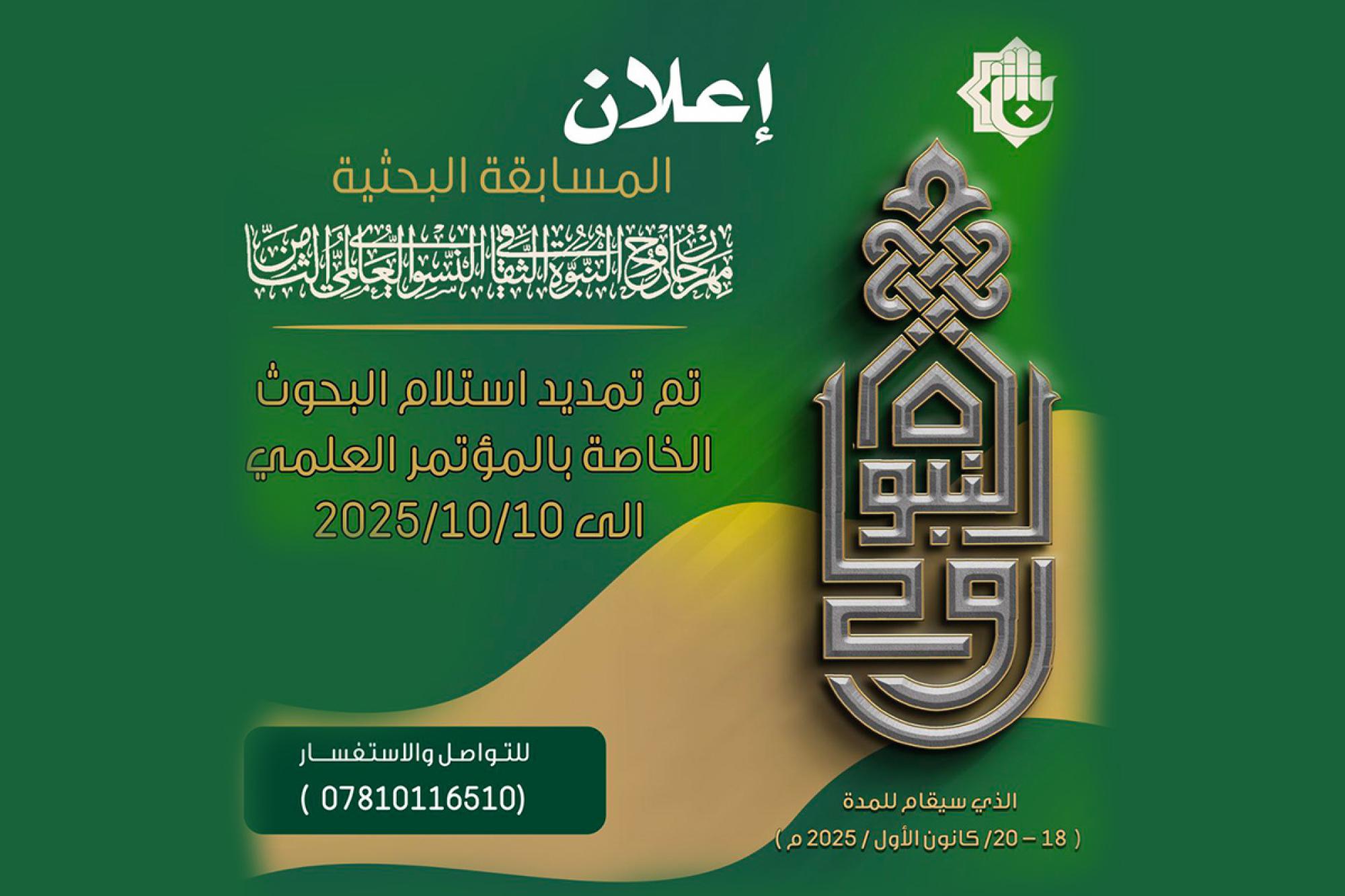 أعلنت اللجنة التحضيرية لمهرجان روح النبوة النسوي العالمي الثامن، تمديد موعد تسلم البحوث الخاصة بالمسابقة البحثية.
