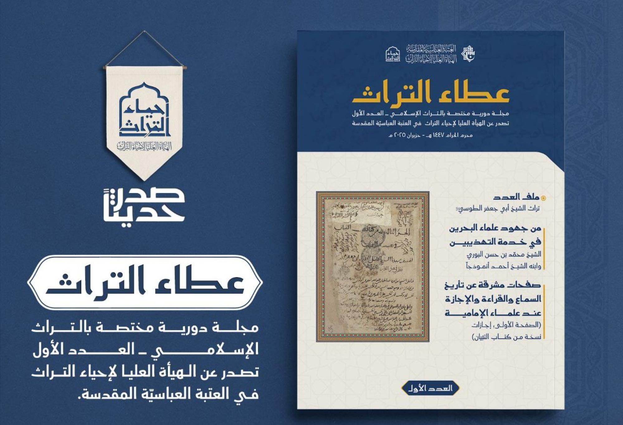 روضہ مبارک حضرت عباسؑ کی ہیئت عالیہ برائے احیاءِ تراث کی جانب سے "عطاء التراث" کے نام سے نئے رسالے کا پہلا شمارہ شائع کر دیا گیا ہے۔